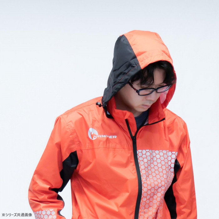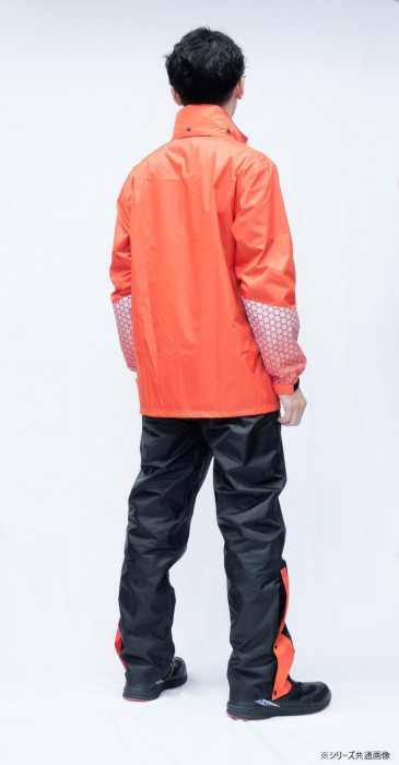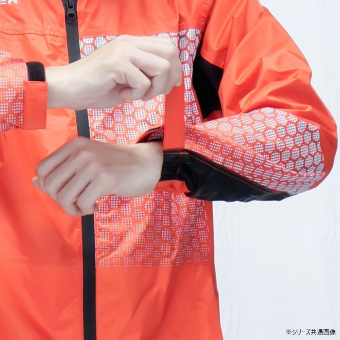 | 仕様 | 耐水圧:15000mm(初期値) 透湿度:8000g/m2・24h(初期値) ・防水/撥水加工 ・透湿素材 ・収納フード ・止水ファスナー ・グラデーション反射プリント ・ゴム袖&面ファスナー調節 ・ジャケット裾絞り調節 ・パンツウエスト調節 ・両腰ポケット ・足裾幅広マチ付き |