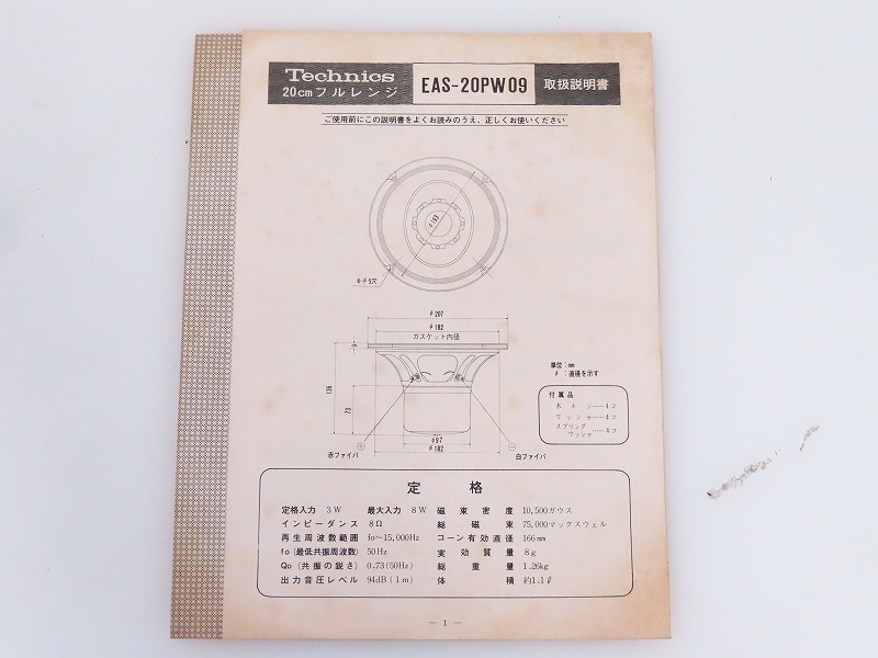 ■メーカー : National ■型番 : EAS-20PW09 ■インピーダンス : 8Ω ■外径寸法 : 直径210×奥行125mm ■重量 : 1.3kg ※弊社実測の為、多少の誤差はご了承下さい。 ※ペアでの出品となります。 ※元箱付は1本のみとなります。 【商品の状態 当店での確認内容】 音声出力は確認できておりますが、片方のエッジに破れがございます。 ※上記により【現状商品】としての出品となります。 「商品の状態」に関しましては当方主観の目安となります。外観などは中古品で個人差もありますので詳細は画像にてご判断ください。 画像にて不明な点はご質問下さい。 出品商品は画像のものですべてになります。画像に写っているもの以外は付属いたしません。 【送料 全国一律 2,080 円 沖縄、離島は別途お見積り】 ※送料がお得になるサービスです(下取りシステムのご案内です) ストア決済利用時にクレジットカードやPayPay残高/PayPayクレジットを利用の方は留意点がございますのでこちらを参照上ご利用ください。 当ストアでは商品を安全にお届け出来るよう提携運送会社と協議の上、発泡緩衝材や強度段ボールの使用等 運送会社が指定する梱包方法や資材を採用しております。 より安全にお届け出来るよう商品仕様により梱包サイズが大きくなる場合や個口数が増える事がございます。 【当ストアオークションルールを入札前に必ずご確認ください。】 【落札後の取引手順】 ・落札後は取引ナビにて、必要事項をご入力後、送信ください。 取引終了後48時間(土、日は除く)以内に入力をお願い致します。 ※ご連絡が頂けない場合は落札者様都合でのキャンセルとさせていただきます。 ・落札代金(商品代金+消費税+送料)の入金をお願い致します。 ※大型商品の場合は送料確定後の決済となる為取引ナビを入力頂き、当ストアより送料のご案内が来るまでお待ちください。(土曜、日曜、祝日の場合は翌営業日より順次ご案内いたします) ・お支払い方法はクレジットカード/PayPay残高/PayPayクレジット/PayPay銀行/ゆうちょ銀行のみです。 ※商品代金引換(代引き)のお取り扱いはしておりません。 ※領収証の発行が必要な方はご連絡ください。 ※銀行振込の際の振込手数料はご負担願います。 ・入金確認後に出荷手配を致します。 (原則入金確認後3営業日以内に発送いたしますが、大型や重量のある製品はお時間をいただく場合もございます。) ・発送は当店指定の運送会社の元払いのみでの発送となります。 ※他の運送会社、送料代引き等は致しかねます。 ※落札者様ご自身での運送会社の手配いただく事も可能ですが荷物事故の責任の所在の問題上、梱包は致しかねます。 ※店頭にお越し頂き手渡しも可能(福岡市早良区)です。ご希望の方はご落札後にご連絡下さい。 ・大型/重量物商品の送料につきましては商品の特性上、荷降ろし状況等により送料が大きく前後し運送業者に別途見積りが必要な為、早めのお問い合わせにてお見積り上、入札をお願い致します。 【初期不良の保証について】 ・商品到着後の初期動作不良、また配送中の事故による破損、不具合が有る場合は、商品発送後10日以内に当ストアまでご連絡ください。当ストアでは修理での対応を優先させて頂きますが、修理不可の場合は全額返金させて頂きます。 (商品代金+消費税+送料のお支払い頂いた金額となります) 【初期不良の保証の対象外について】 次の場合は保証の対象外となりますのご留意ください ・ジャンク商品、現状商品、難あり商品での出品商品。 ※難あり商品に関しましては動作確認時に一部動作不良が確認された商品になり、記載している動作確認以外にも、動作不良がある可能性もございます。こちらに関しましても保証対象外となりますことをご理解ください。 ・年代物のオーディオなどで、当店にてわからない範囲で部品が交換されている場合 ・楽器類の特殊機材(マイクロスコープ等)での確認までは行っておりません。気になる方は事前にご質問いただくか、入札をお控えください。 ※初期不良に関しましては【商品の状態】に記載のもの、またそれによって起因する動作不良は対象外です。 ※商品発送後10日を過ぎてのご連絡は対応が出来ませんので、商品が到着しましたらお早めに確認をお願い致します。 【メーカー保証の加入・継承】 ・未使用品、展示品やメーカー保証期間が残っている商品に関しまして、メーカー保証の加入、継承が必要な方は、落札後取引ナビ内にて当ストアにお知らせください。商品発送までにご連絡いただけない場合、メーカー保証の手続きを承れない場合があります。 【評価について】 ・評価不要の場合、必ず取引ナビの「要望欄」にてお知らせください。それ以外でご連絡をいただいた場合、対応できない可能性がございます。一度行った評価はシステム上取り消しが行えませんのでご了承ください。 【入札削除・キャンセルについて】 ・入札後はトラブル防止の為いかなる事情がおきましても入札を削除等は