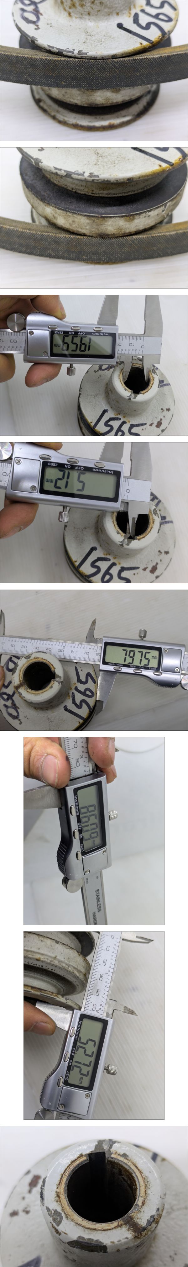 | ●●最後まで読んで下さい●●納得した上でご入札してください●● ●機械専門アカウントは**こ ち ら**です。 ●当方の別出品物を同時購入しても送料分安くなりません。 ●発送料金は入札ボタン付近にあり、沖縄、北海道、離島以外一律です。 ●塩尻市から発送します。 ●離島発送はできない場所がございますので、事前にお問い合わせください。 ●発送日は月、水、金、日です。急ぎの場合はご連絡をお願いします。 ------------------------------------------------------------------------------------------- ●バインダー三菱MB560から取り出しました。 ●2連のプーリーです。 ●Bベルトです。 ●軸 径:約Φ20mm ●鍵 幅:約5mm ●プーリー外径:約Φ80mm ●全体 厚さ:約86mm ●ベルト部 厚さ:約52mm ●書いたインクは消さずに発送します。 ●素人寸法のため、測定誤差があります。 ●中古品のため、サビや汚れがあります。 ●錆は各自で取り除いてください。 ●現状写真の通りのまま送ります。 ------------------------------------------------------------------------------------------- ●下の方にも画像がございます。※たまに写真の枚数が不足していて画像がない場合があります。 ●落札後、ご指定配達の時間帯がある場合はあらかじめご連絡してください。 | |||
