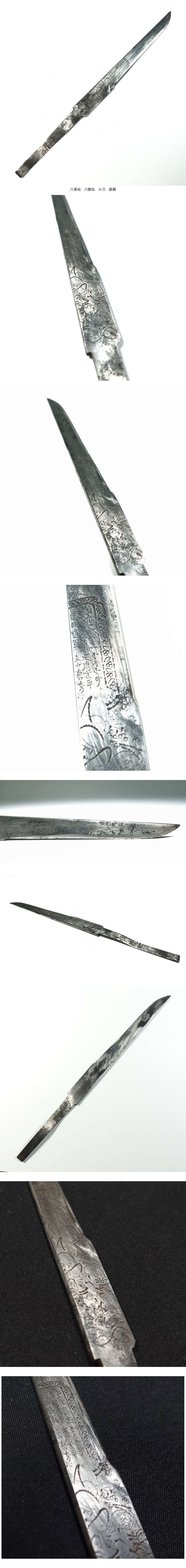 六哥仙(六歌仙)の小刀、鉄製です。極細の文字と絵が彫られている超絶技巧の作品です。