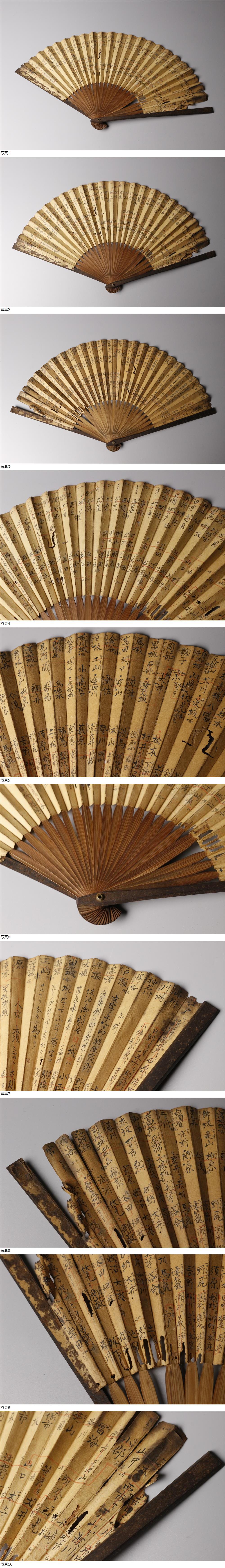 25122011* * * 商品詳細 * * * ここでしか出逢うことのできない唯一の美をご紹介させて頂きます。 歴史を纏った街道名文 鉄扇のご紹介です。 経年を経た風貌は歴史を感じるお品で 錆びの入った鉄の肌地は味わい深く、 扇にはかつての街道の名前が並んでいます。 現代の物にはない古格溢れる逸品を この機会にお手元にてご堪能下さい。 ■サイズ/横3cm×縦25cm×奥行1.3㎝ 開いた全長43.5㎝ ■状態/スレ、傷、経年による傷み、錆び、汚れ、紙に焼け、 破れ、シミ、仲骨に割れがございます。 ※写真にてご確認、ご了承の上ご入札下さい。 * * * 支払詳細 * * * !かんたん決済 * * * 発送詳細 * * * 入金確認後3営業日以内に発送致します。 ※直接引き取りも可能です。 60~160サイズにつきましては 佐川急便、ゆうパックのどちらかで発送いたします。 ゆうパック発送の場合、弊社の発送日から追跡サービスに問合せ番号が反映されるまで 約1日ほどお時間がかかりますのでご了承下さい。 * * * 注意事項 * * * 運送中の破損があった場合は速やかに当社までご連絡下さい。 保険を利用するのに受取連絡後に運送会社による現場での破損状況確認が必要となります。 勝手に返送されますと保険の適用外となりますのでご注意ください。 * * * * * * お問い合わせ:082-236-8669 |