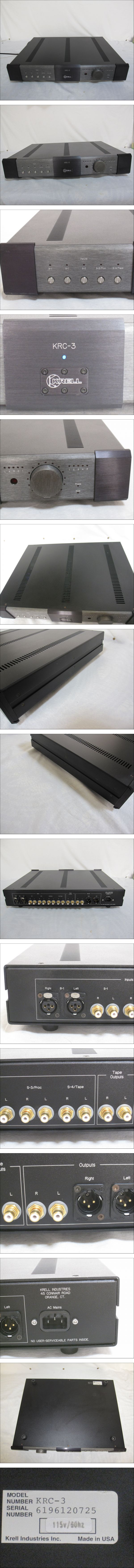 | 商品説明 | メーカー:KRELL MODEL:KRC-3 SERIAL NO:6196120725 製造年は不明です。 (商品状態) 通電は確認済みです。 他の機材に接続しての確認はしていません。 経年によるくすみ・すれ・傷などあります。 (その他) リモコンなど付属品は何もありません。 電源コードは純正ではありません。 (サイズ) 幅:約48.5cm 奥行:約38cm 高さ:約9cm 重さ:約8.3kg 細かな動作確認をしていませんのでジャンク品として出品します。 ご理解の上入札お願いいたします。