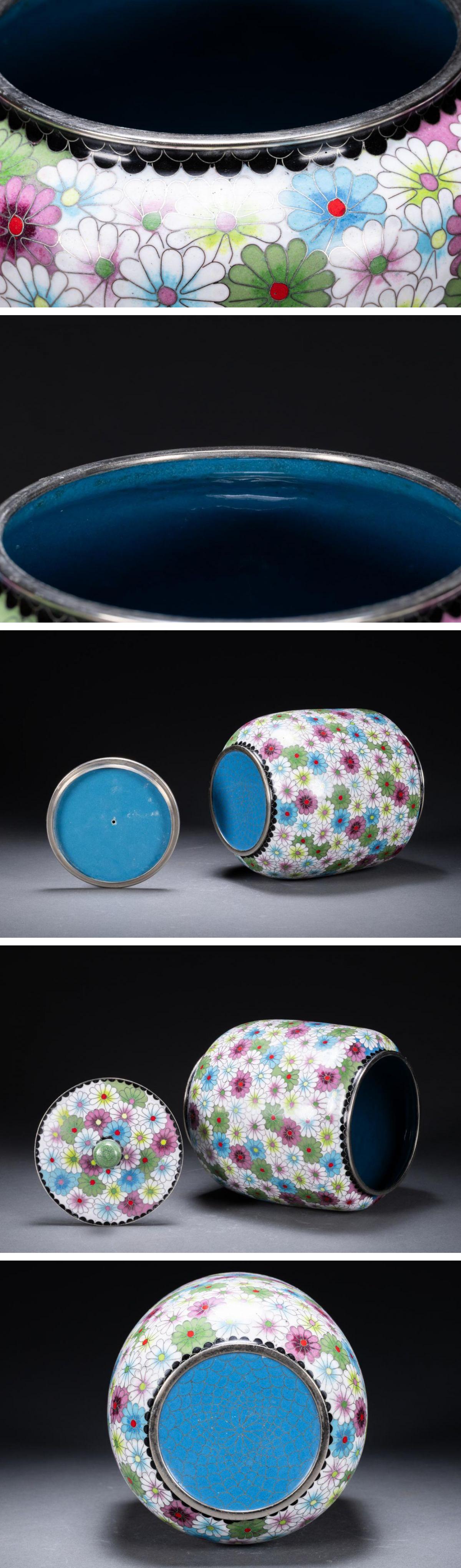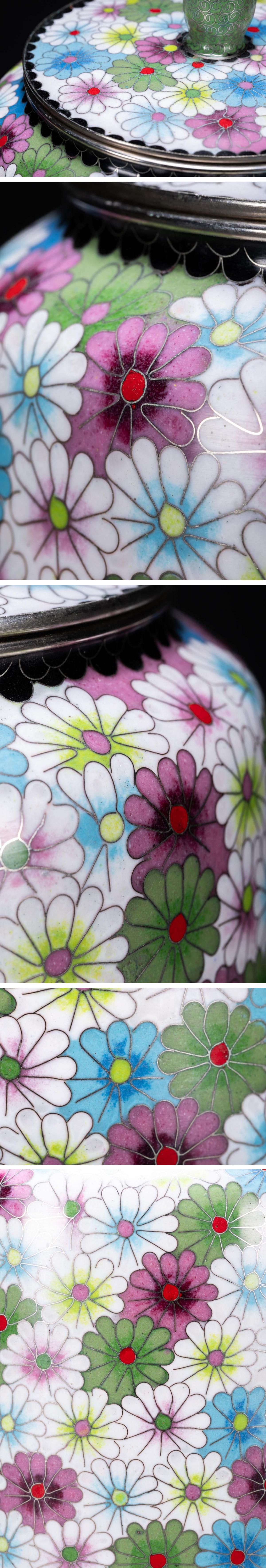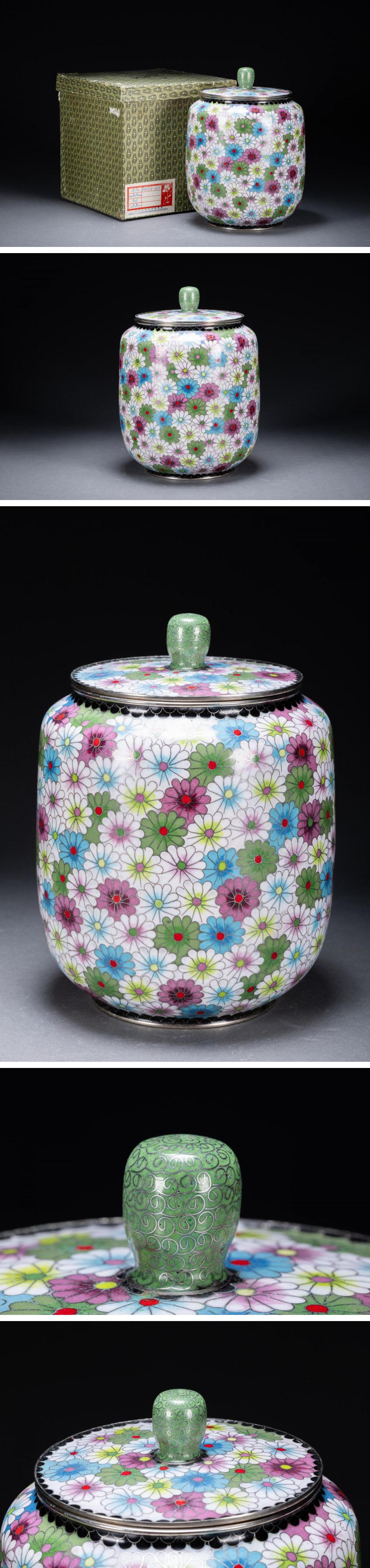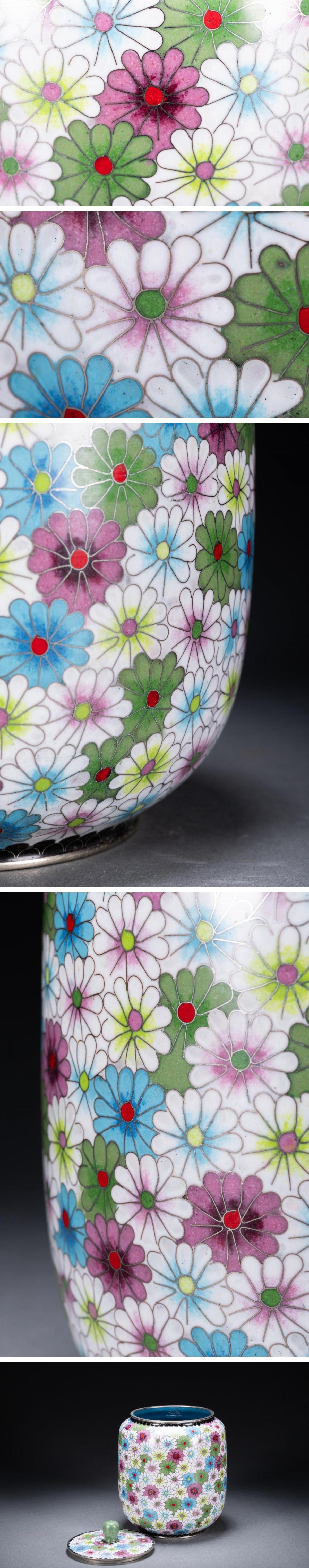 【清】某有名オークション買入 時代物 中国伝来 銅胎景泰藍 巨大花卉紋蓋壺 骨董品 古美術7L10-120S3