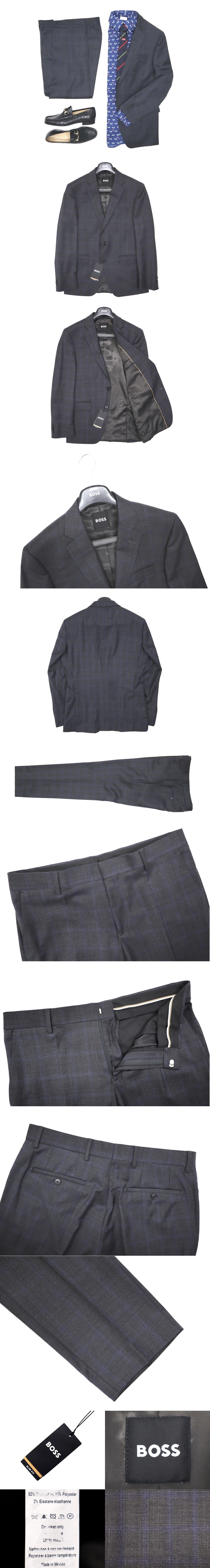 21万新品◆48=M◆BOSS ヒューゴボス グレンチェック柄ウールスーツ『H-Huge-224』 濃灰×青 SLIM FIT