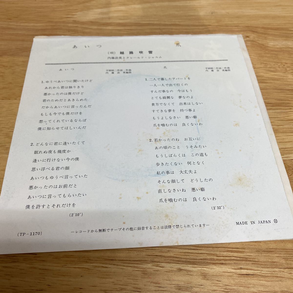 ■盤質 音に影響のない薄い刷毛キズはあります。音とび等はありません。当方出品は全品同梱可能です。※店頭にても販売しておりますので安価な即決価格のものは売り切れている可能性もあります。その際は取引ナビにてその旨ご連絡ののちにキャンセル手続きをさせていただきますのでご了承ください。 出来る限り客観的に判断しておりますが中古ですので神経質な方は入札、落札ご遠慮お願いいたします。 ※NO.22 0930