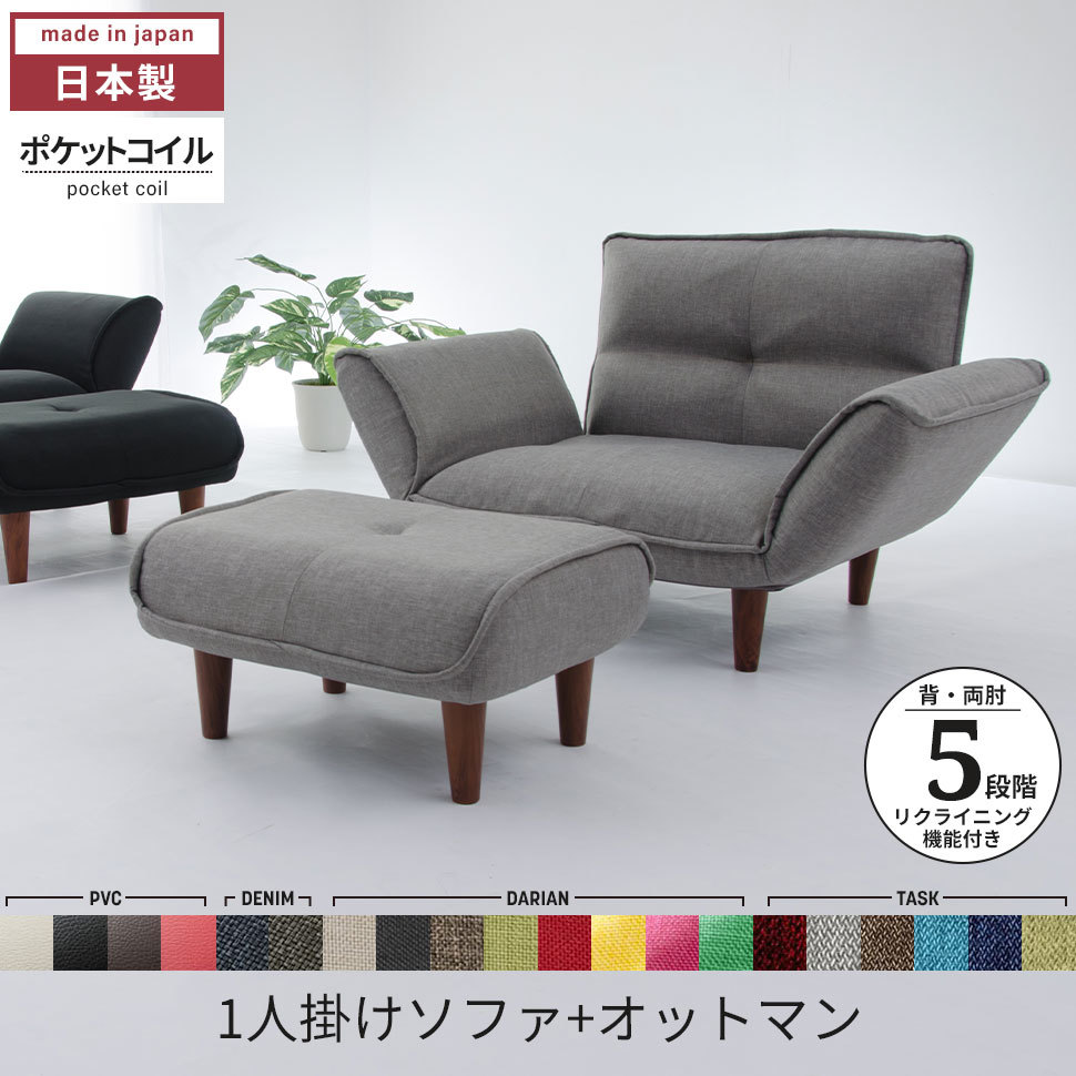 | ソファ 一人掛け オットマン セット 日本製 カウチソファ 5段階リクライニング 選べる 生地 脚 ポケットコイル 肘付き おしゃれ 取り外し可能 取付簡単 コンパクト 省スペース かわいい 高級感 カウチ フロアソファ ローソファ リラックス 脚付き 高さ調節 脚 ゆったり 1人掛け 1人用 一人用 1P SET 新生活 一人暮らし ワンルーム リビング 寝室 ベッドルーム 書斎 タスク 丈夫 ダリアン ファブリック レザー PVC 合成皮革 合皮 デニム調 デニム ソファー カウチソファ― フロアソファ― ローソファー リクライニングソファ |