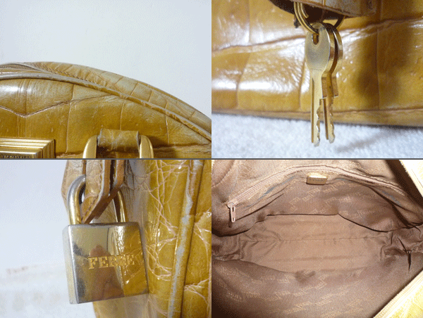 | ジャンフランコフェレ GINFRANCO FERRE レザー ブラウン系 茶系 クロコ型押し 半円月型 ハンドバッグ レディース | ||