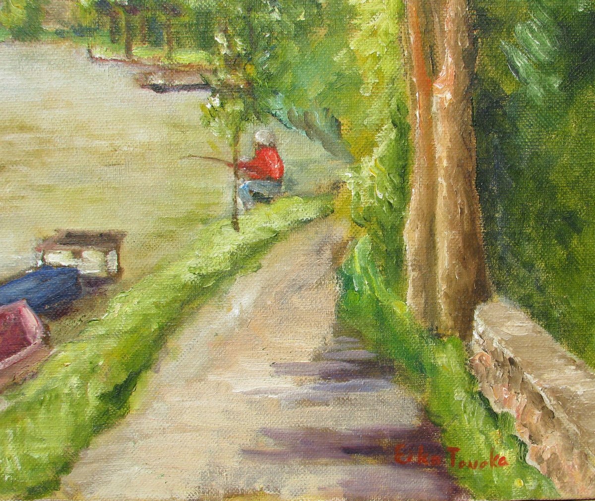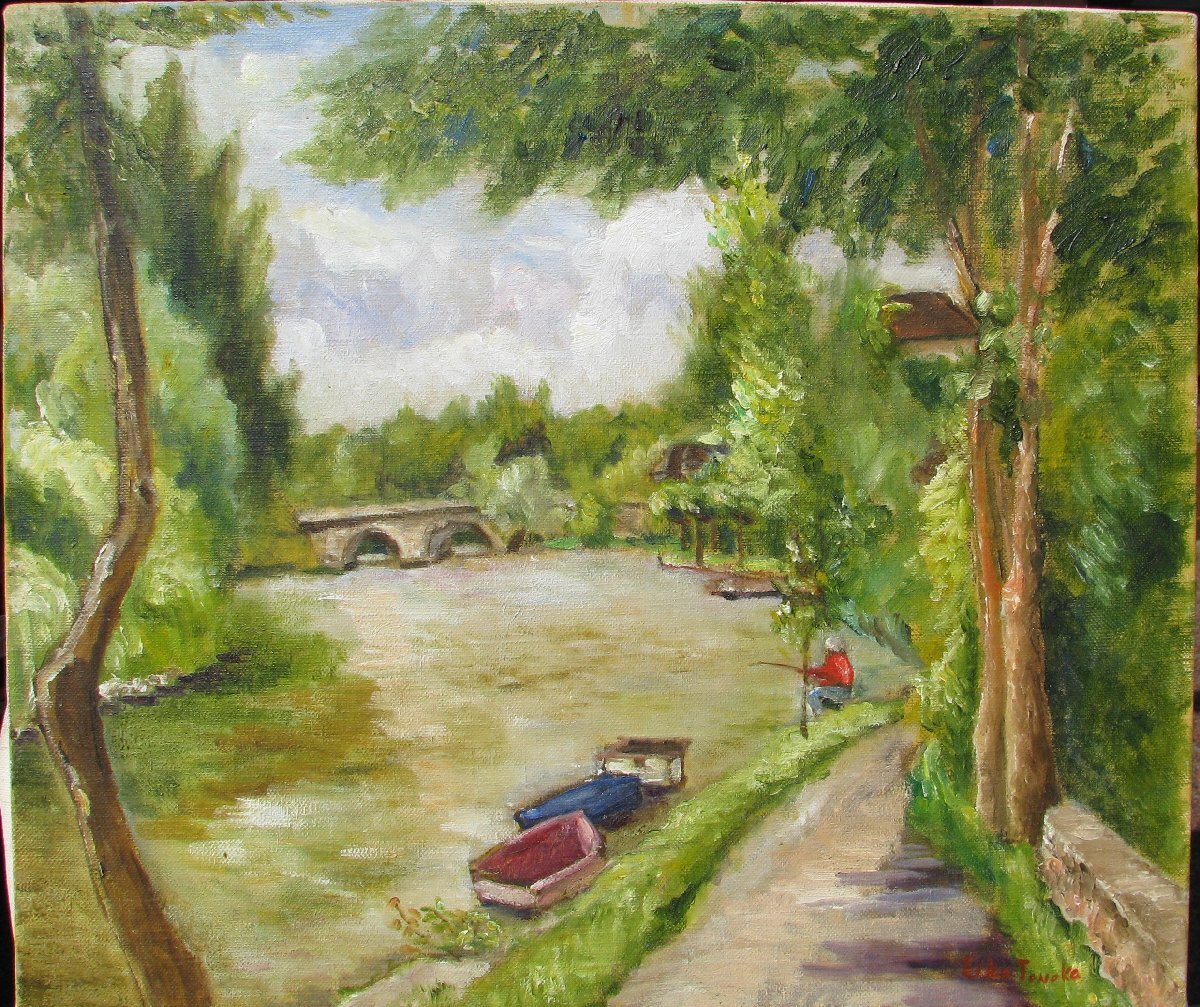☆倉庫整理在庫一掃☆田中鍈子(えいこ),河畔風景,10号油彩,フランスにて,額無し,師牛島憲之,成行