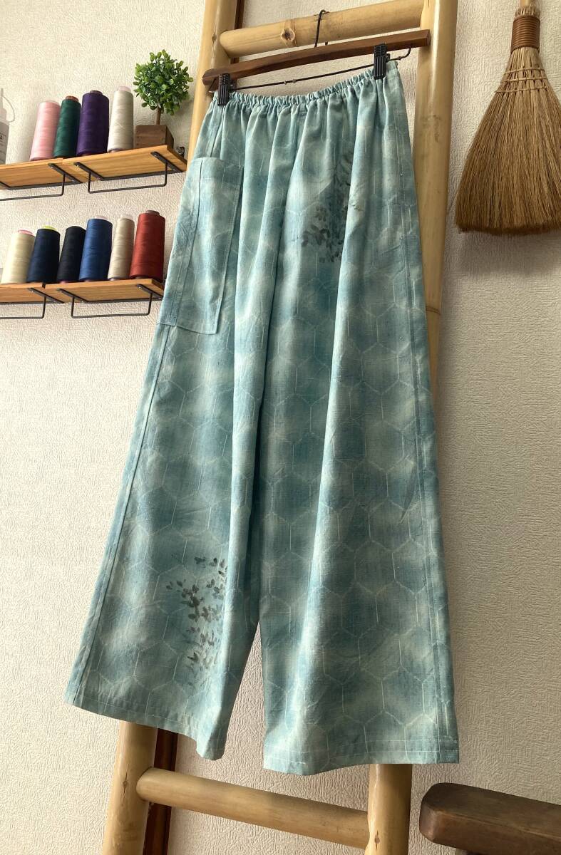 ![]() | 商品説明 ✽鎌倉まるか堂✽ ~ゆるり~ ゆったりらくちんパンツ ~作品詳細など~ ✽総丈89㎝ 股下59㎝ 渡り幅34㎝ 裾幅29cm ✽ウエストサイズ 55㎝~110㎝ ・目安として、50㎝~100㎝=S~M 55㎝~110㎝=M~L 60㎝~120㎝=M~LL以上 ✽生地…絹。普通厚、光沢ややあり、程良いシャリ感とハリ感、さらりとして程良く柔らかく手馴染み良い上紬生地。 ・(無理にアイロンを掛けず洗いざらしのままの風合いでも穿き愉しめます!) ✽色柄…水色に浅葱色を混ぜたような色味を基調に絣調の白抜き亀甲紋様を背景に墨色花群のあるデザイン。 ・() ✽美点…節糸や織りの風合いが良く出ており渋みに効いた色感。墨色の朧げな花群に詫び寂びを感じるどこか風流な雰囲気も兼ね備えた作品です! ・(しっかり水通しをした生地。裾幅広めのゆったりしたワイドストレートなシルエット。気軽に洗濯出来て扱い易く通年で穿き愉しめます! ✽特に浅くも深くもない一般的な深さの股上です。 ・裏地はついてませんので必要に応じてぺチやタイツなどのアンダーを併用して下さいませ。 ・アウトポケットが一つ付いてます。 ・ウエストはゴム2本、調節穴有り。 ・お直しは無料(裾上げなど簡易なお直し)ご希望の場合は必ず初回連絡時にお願いします。 支払方法 ✽ヤフー簡単決済 発送方法 ✽ゆうパケット(場合により定形外郵便) ✽発送は神奈川県からです。 注意事項 ・解き生地の場合は染み、焼け、解痕、折皺等ある場合がございますのでご理解をお願い致します。 ・商品はノークレーム・ノーリターンでお願い致します。 ・評価内容に問題のある方のご入札は取り消す事もございます。 ・質問はお気軽にお尋ねくださいませ、出来るだけ詳しくお答え出来るよう努めます。 ✽☆☆☆✽☆☆☆✽☆☆☆✽☆☆☆✽☆☆☆✽☆☆☆✽☆☆☆✽☆☆☆✽☆☆☆✽☆☆☆✽☆☆☆✽☆☆☆✽☆☆☆✽☆☆☆✽☆☆☆✽☆☆☆✽☆☆☆ ✽繊細で優美にあやなす柄や簡素単純でありながらも完成された柄など古から大事に受け継がれてきた和柄のもつ潜在能力は無限の可能性があります、 そんな和柄を活かした着物リメイクを気軽に纏い普段生活に自然と取り入れて頂けたらこの上なく嬉しく思います。和柄万々歳(*'▽') |
