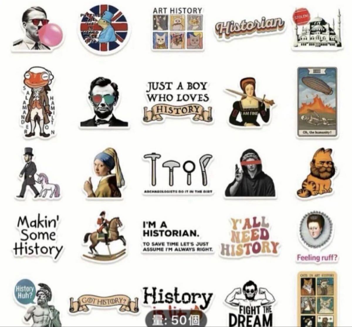 歴史的な人物やアートをテーマにしたカラフルなステッカーセット。| 出价者 | 信用 | 价格 | 时间 |