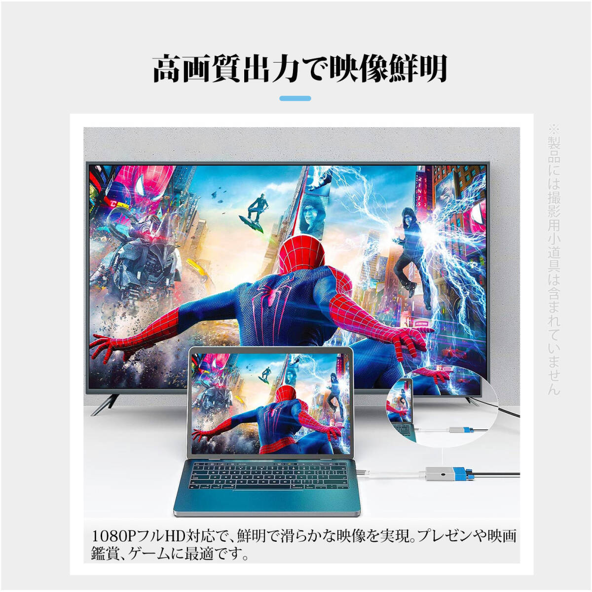 | 対応デバイス | ビデオ伝送対応のType-Cポートを搭載したパソコン、スマートフォン、タブレットに対応 |