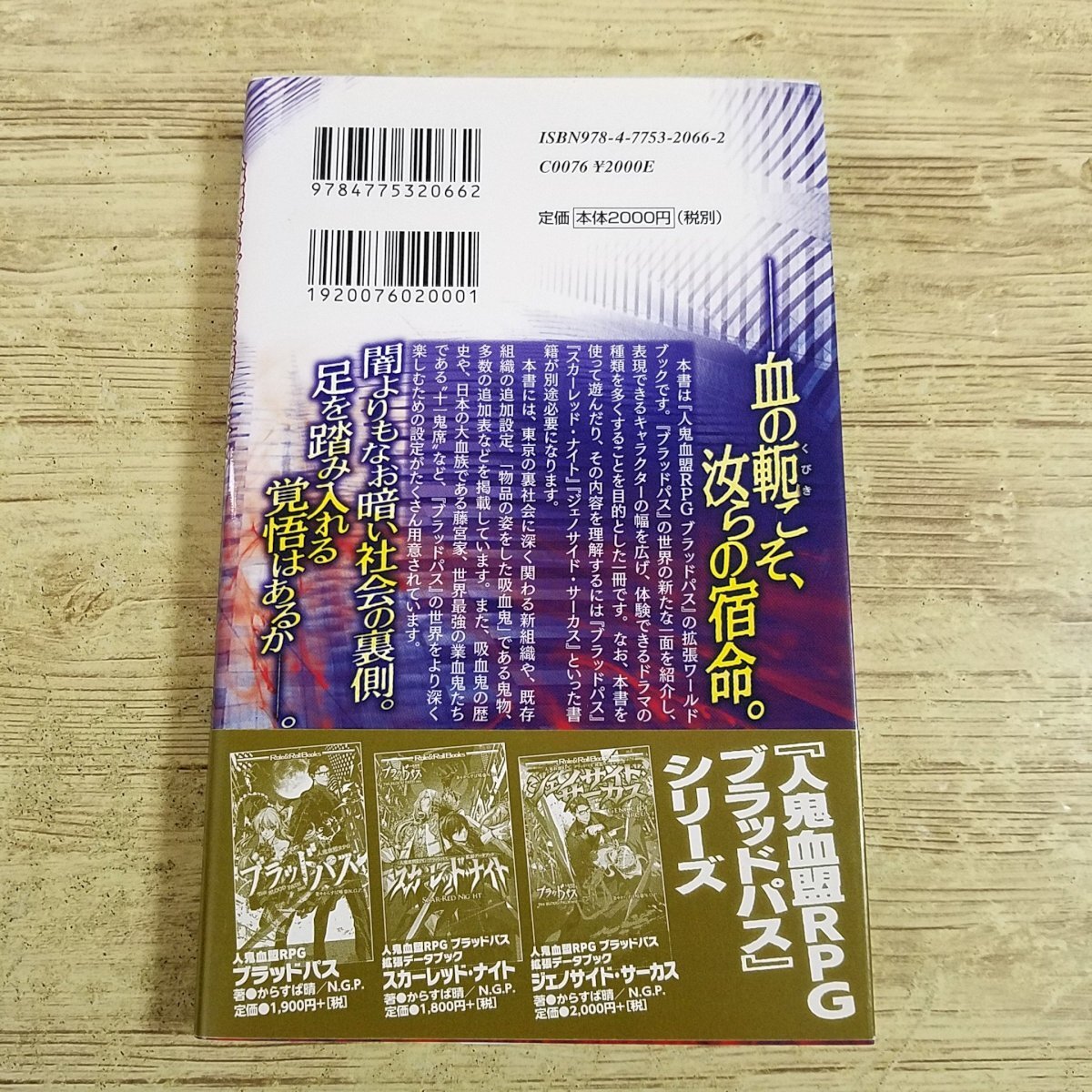 「人鬼血盟RPG ブラッドパス」の世界をさらに深化させる設定資料集。 新組織や鬼物、藤宮家や〝十一鬼席〟など濃厚な追加設定で、物語とロールプレイにさらなる深みをもたらす。 既存ルールと組み合わせて、裏社会ドラマを濃密に体験! 人鬼血盟RPGブラッドパス 【人鬼血盟RPG ブラッドパス 拡張ワールドブック アンダーグラウンド・ファイル】 著者:からすば晴/N.G.P. 出版社:新紀元社 発行年:2022年12月28日 初版 商品の状態:並。多少の使用感あり(経年変化含む) (折れ少々 / 汚れ少々 / ヨレ少々) 付属品: 備考: 【人鬼血盟RPGブラッドパス』 『人鬼血盟RPG ブラッドパス』は、現代日本を舞台に人間と吸血鬼が「血盟」を結び、共に「業血鬼」と戦うテーブルトークRPGです。 サイコロではなくトランプを使う判定システムが特徴で、演出や物語に集中しやすい設計。キャラ作成では出自・喪失・感情などを細かく設定でき、ペアの関係性が物語の核となります。調査や交流を軸にしたドラマターンで進行し、物語性と戦略性の両立を楽しめる作品です。 【TRPGとは?】 TRPGとは「テーブルトーク・ロール・プレイング・ゲーム」の略で、会話をしながら(テーブルトーク)、役割(ロール)を演じる(プレイング)ゲームのことです。 プレイヤーは用意された架空世界(物語)の中の登場人物として、そのキャラクターを演じ、行動を選択し、新たなストーリーを作りだしていきます。 #TRPG #ブラッドパス #伝奇TRPG #TRPGサプリメント #からすば晴 #N.G.P. 当商品は中古品です。 状態については、写真もよく参考にしてください。 商品の状態についてできる限り確認・記載しておりますが、見落としがあった場合はなにとぞご容赦ください。 |