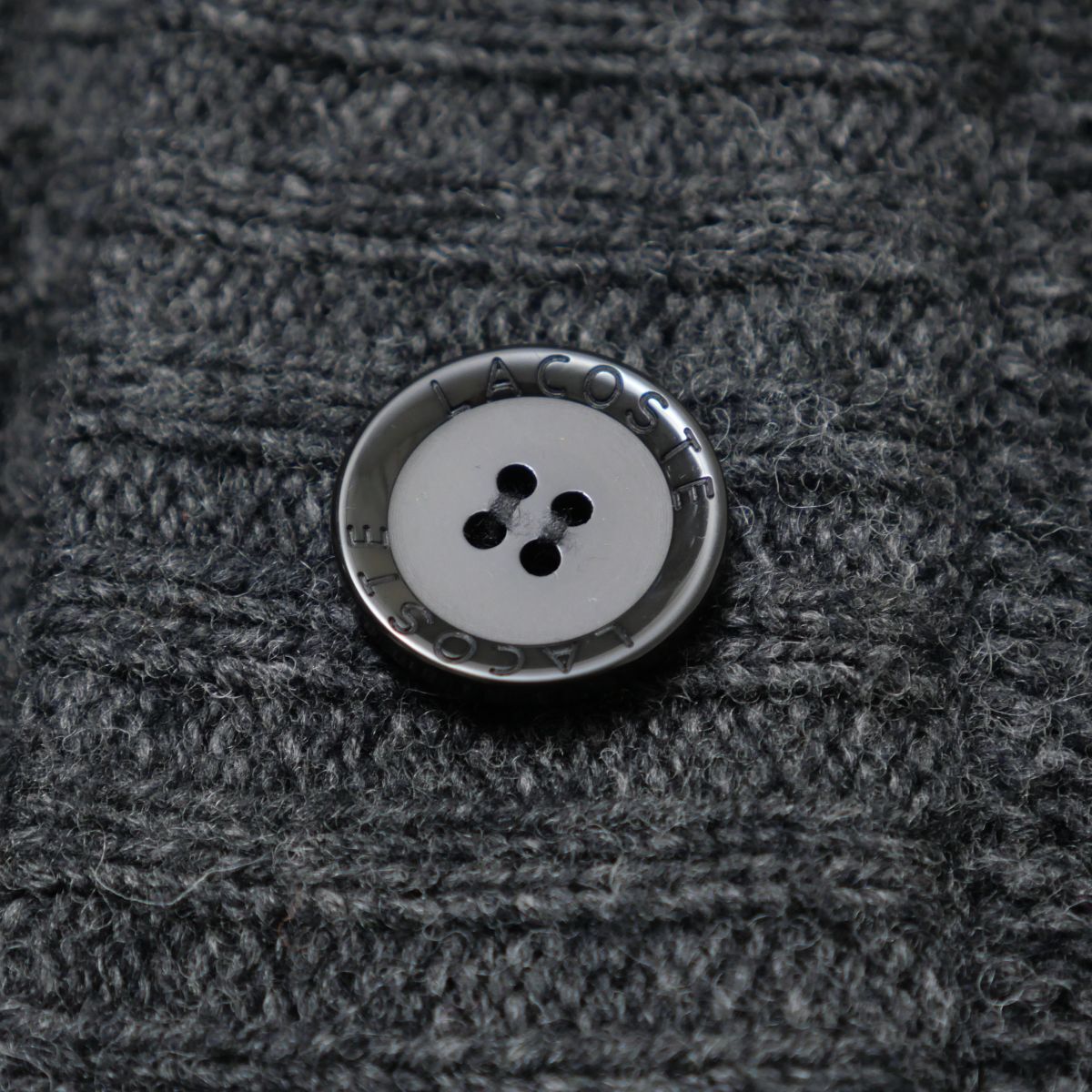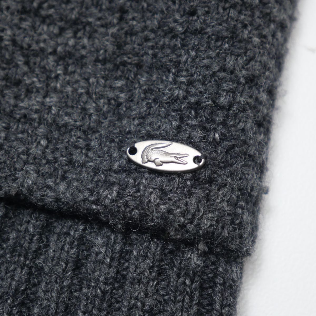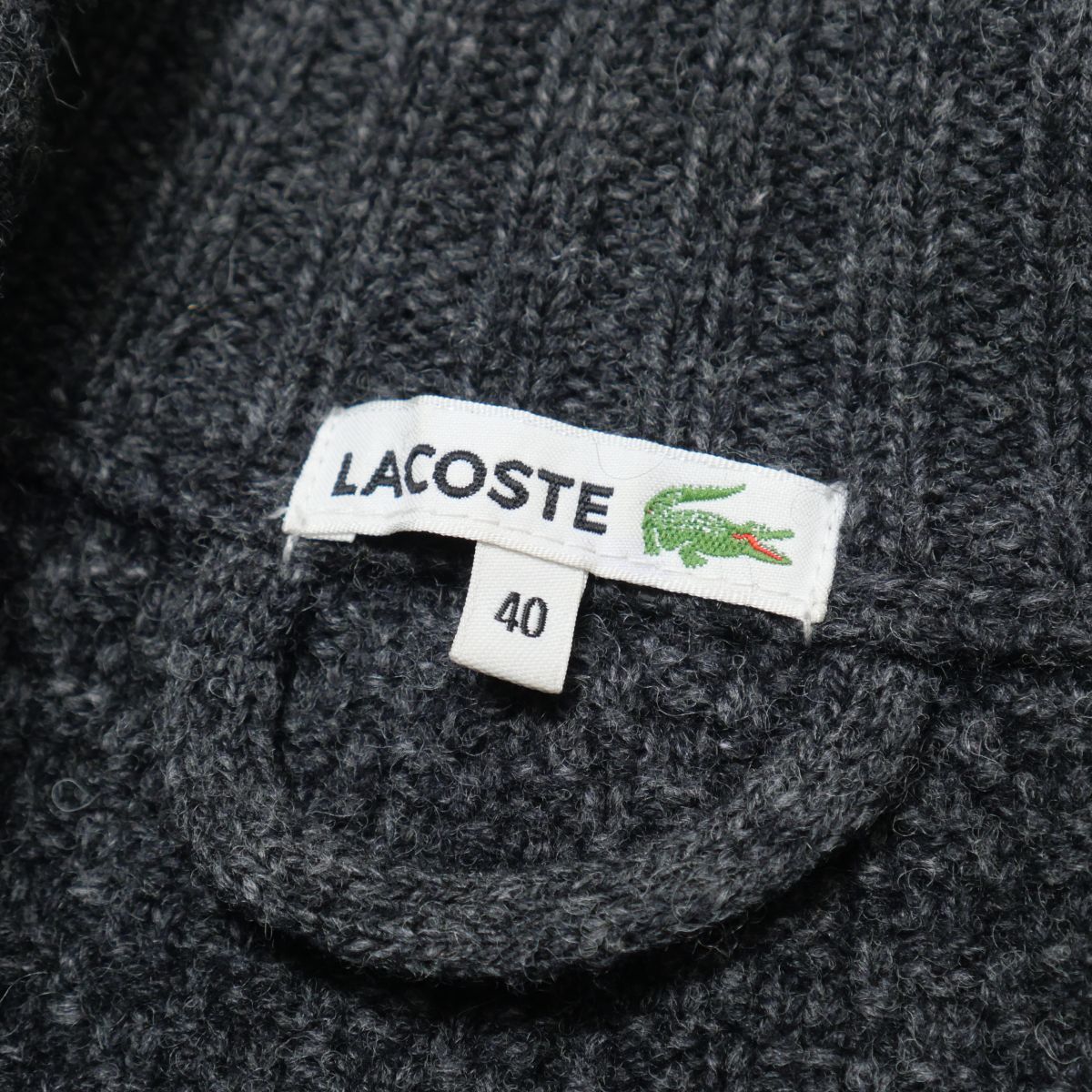 | TI6772☆ラコステ LACOSTE ニットカーディガン ニットジャケット ハーフ丈 スタンドカラー ウール混 グレー サイズ40 | |||