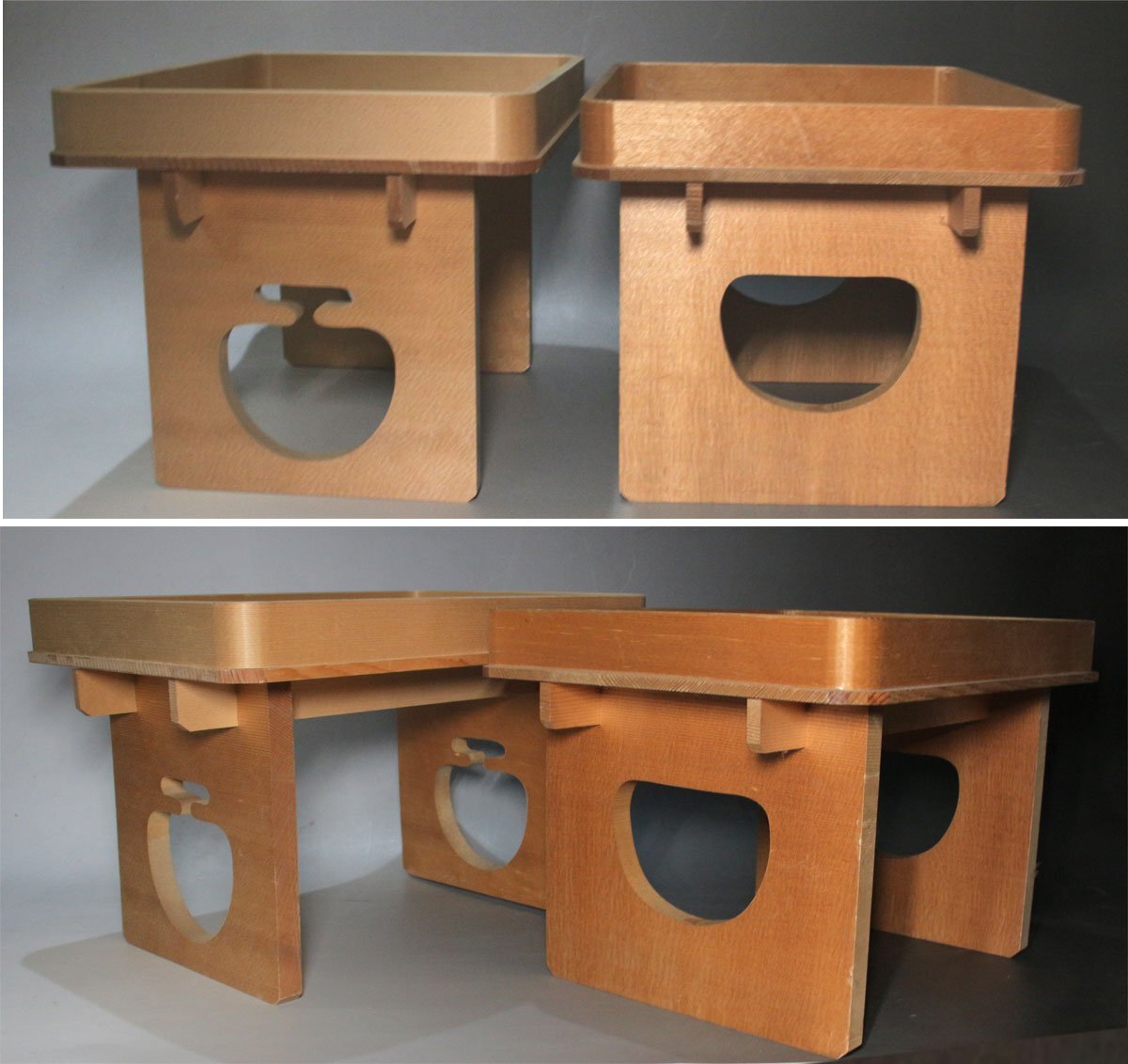 桧白木造 寸法(約/cm)高20.5x30x23/高20x29.3x22.5 経年のヤケ、薄ヨゴレ他概ね良好なコンディション。 [FA1031〕 |