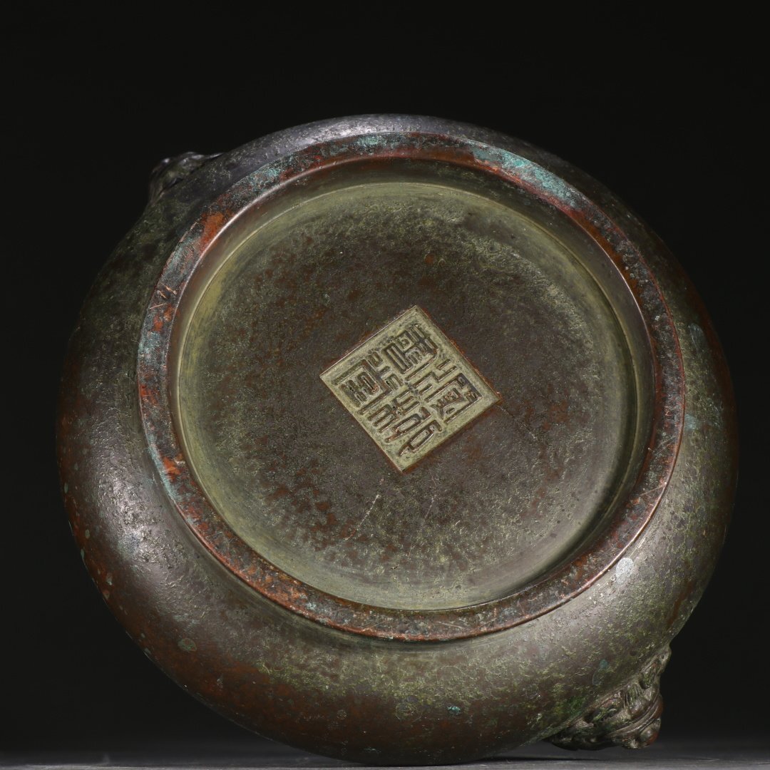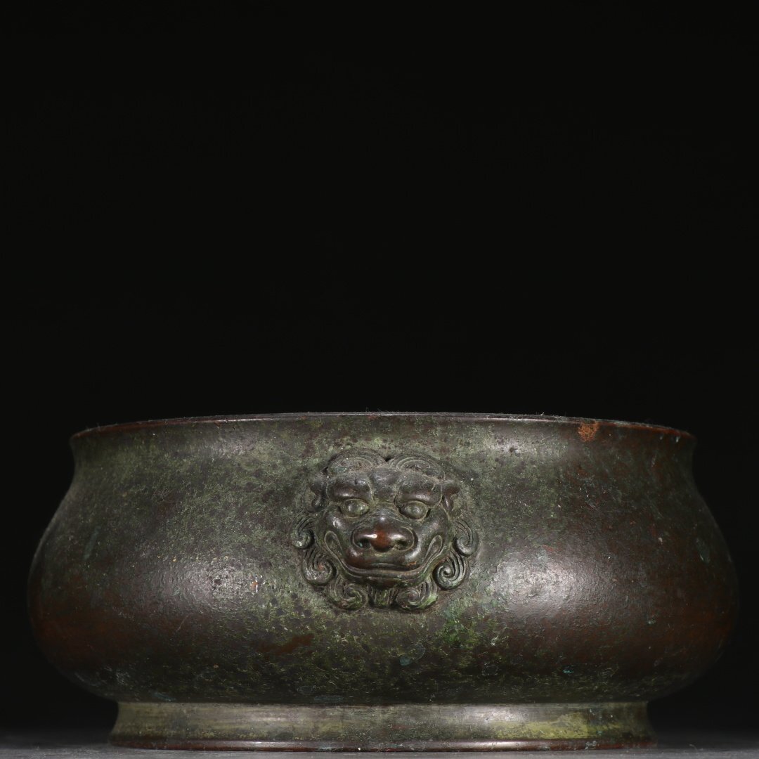【安】清時代 在銘 銅胎 双獅耳香炉 極細工 古置物 古擺件 中国古美術 時代物 古董品 331 サイズ(約寸) |