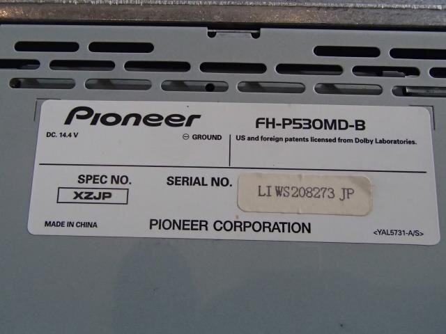 | 備考 | シャガイ、カロッツェリア、FH-P530MD-B、2DIN、MD、CD、テスト済、No.1203 | ||||