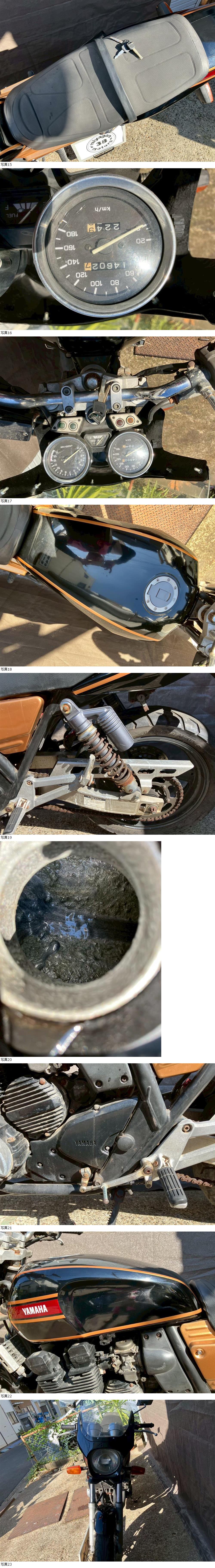 全体的に年数相応の傷や錆がありますが、ビキニカウル仕様でRZカラーがとても渋いです!