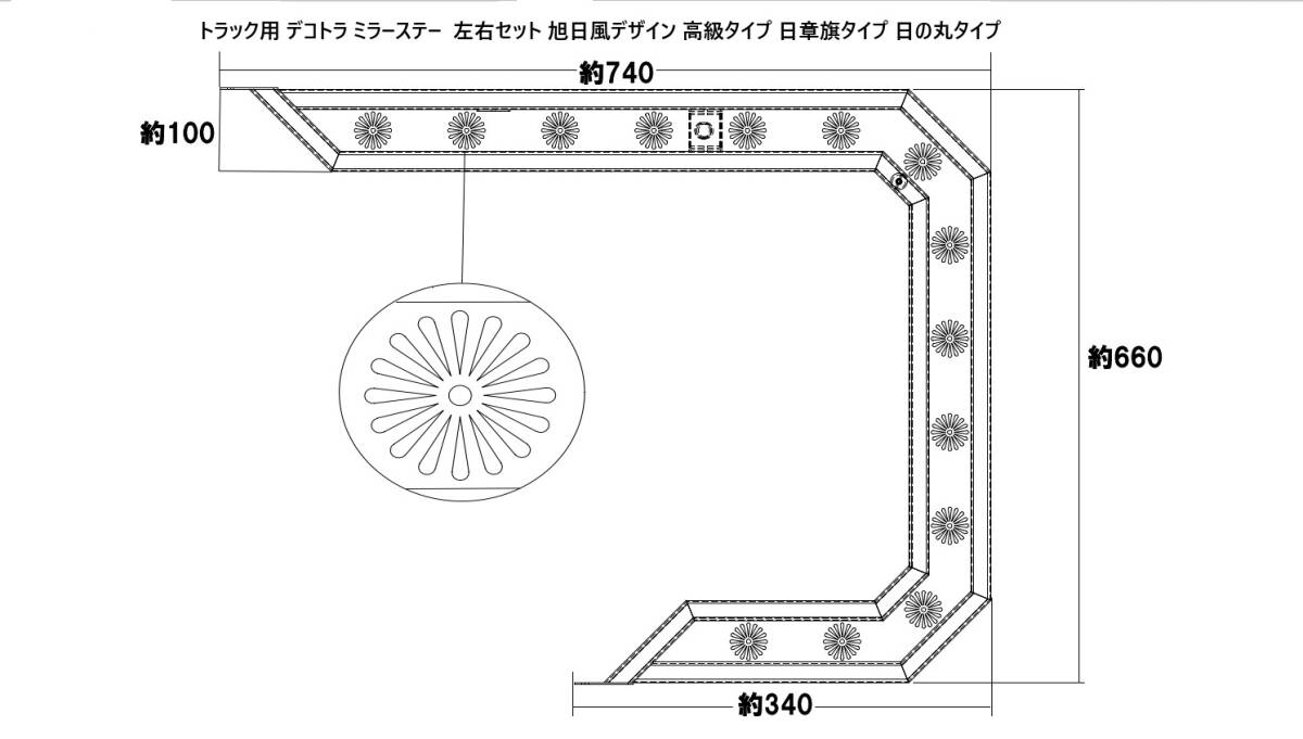 デコトラ ステンレス ミラーステー 左右セット旭日風デザイン 高級タイプ 日章旗タイプ日の丸タイプ SUS304 大型トラック ダンプ 等