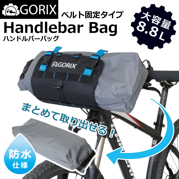 長時間リュックを背負わずに荷物を運べる簡単取り付けのフロントバッグです。 フロントに収納袋の長さが入る自転車であれば取り付け可能です。 固定部分はハンドルにベルトで固定して取り付けるだけなので マウンテンバイクMTB、自転車等は取り付け可能ですが、ロードバイクはフロント設置幅をご確認下さい。 最大の容量まで伸ばせない場合がありますが伸縮式なのでハンドルサイズにあった収納ができます。 容量によっては収納袋を小さく畳んでコンパクトにもできます。 収納袋は防水仕様で簡単装着・取り外し可能! 長時間の旅行に、ブルベに、ロングライドの大容量の荷物運びにオススメのハンドルバッグです。 | |