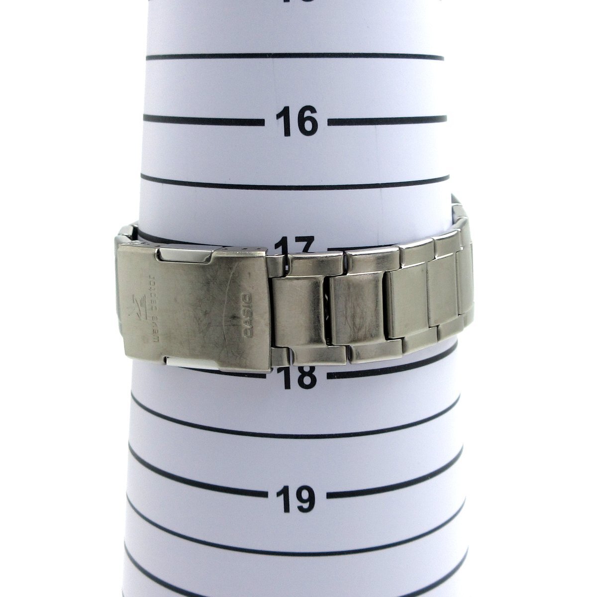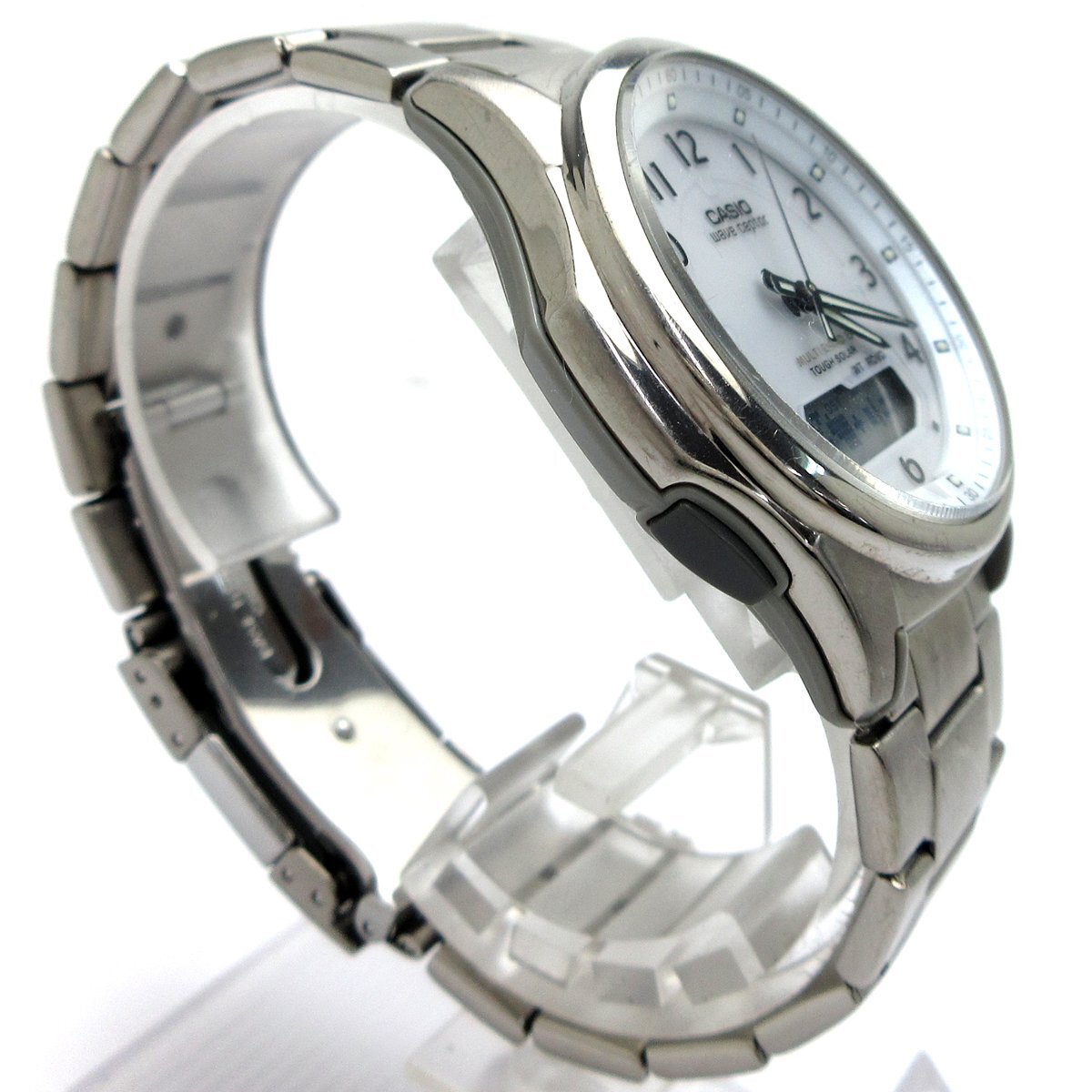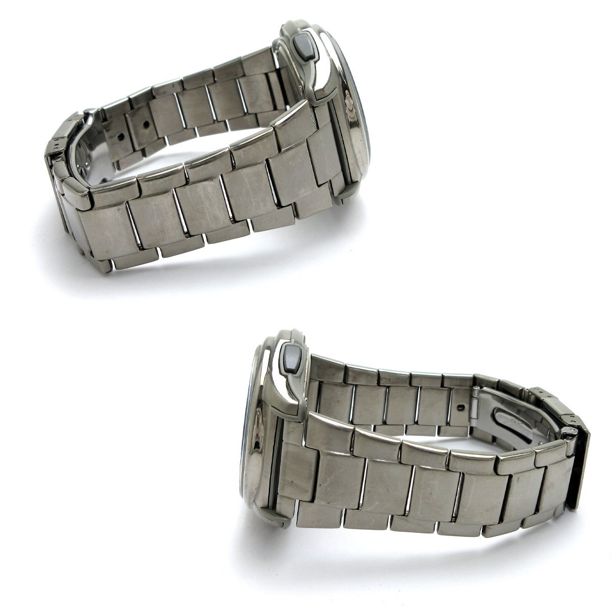■『ソーラーコンビネーション』。 ■ホワイトダイアルにデジタルとアナログ針を装備したモデル。 ■シンプルなデザインに多機能搭載で日常使いからお仕事など幅広く使える時計です。 ◎ソーラー充電、電波受信。 ◎タイマー、アラーム。 ◎ワールドタイム。 ◎ストップウォッチ。 ◎ライト。 ◎カレンダー。 ◎WプッシュボタンつきDバックル。 ---【商品状態】--- ☆外装、クリーニング済、スリキズはありますが比較的キレイです。 ☆ガラスに小キズがありますが肉眼では分かりにくく、視認性に影響はありません。 ☆ブレスサイズはコマ調整にて短くする事ができます。 ☆中古商品のため防水性の保障はつきませんのでご了承下さい。 ※商品画像はお客様のモニター環境によっては色調が異なって見える場合がございますのでご了承ください。 |