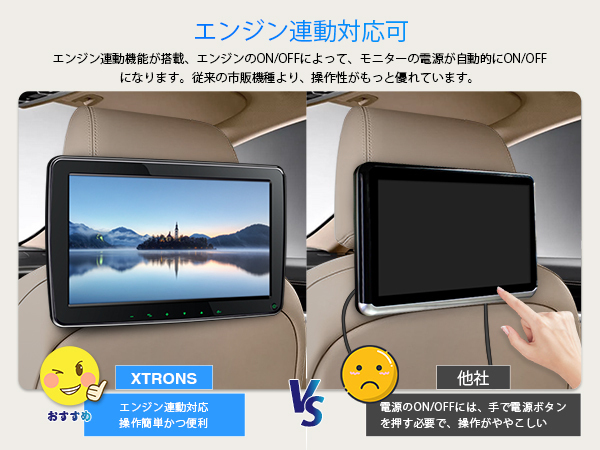 設置後、エンジンのON/OFFによって、モニターの電源が自動的にON/OFFになります。