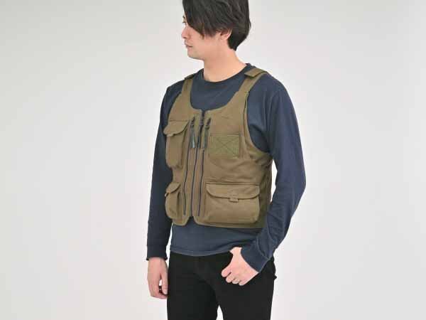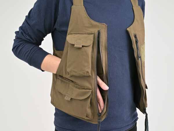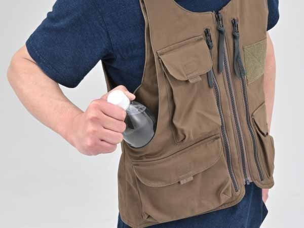タウンユースに使える、胸部と背中にSAS-TECプロテクター用ポケットを搭載したアウトドアベスト。プロテクターをつけて街中を歩いても、いかにもプロテクター感は感じません。