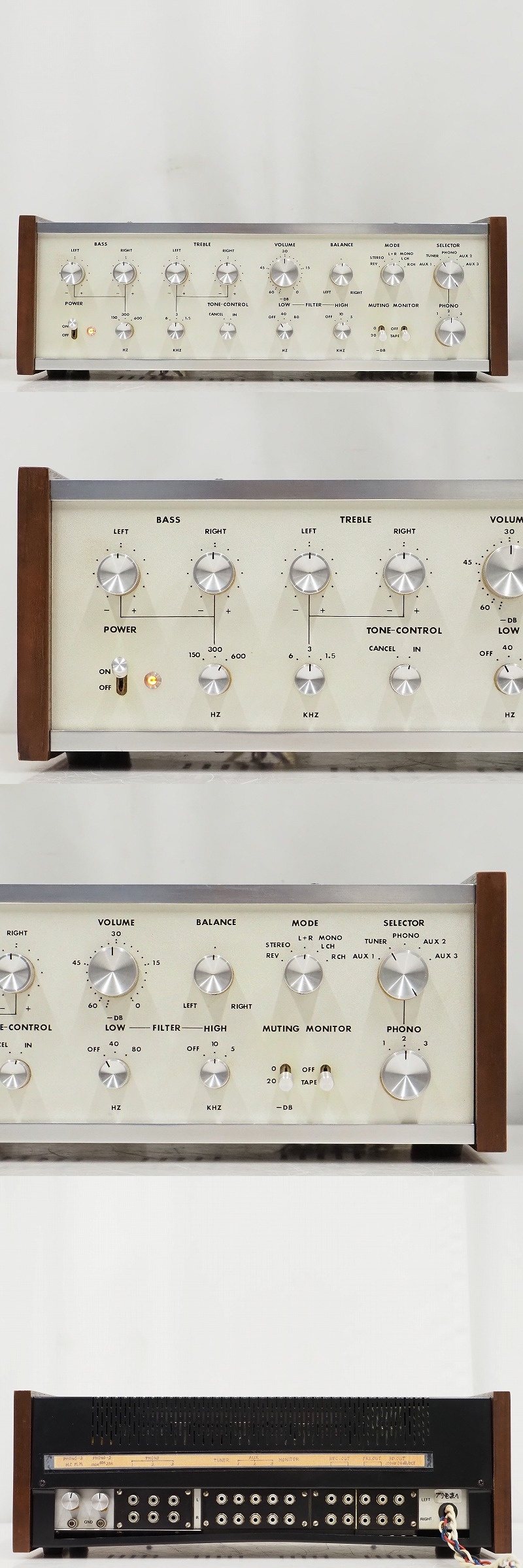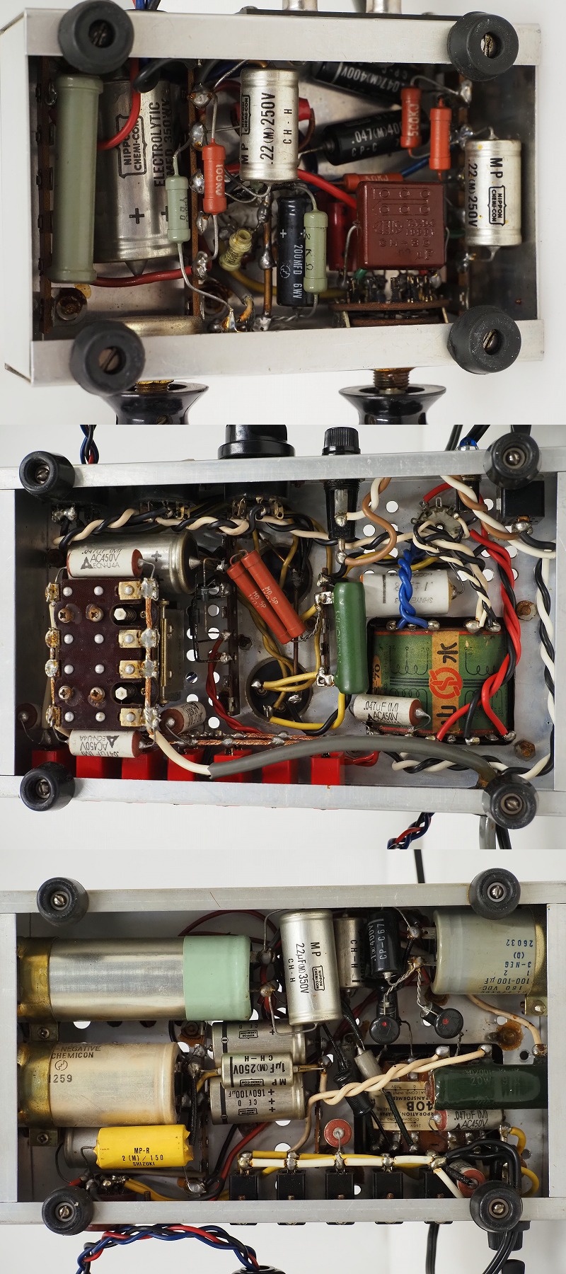 ■LUX 3A40B/SANSUI S-70/SEL C-1016/C-307/C-108 ラックス/サンスイトランス搭載 自作 真空管 プリアンプとなります。 使用トランス 電源トランス LUX 3A40B×1個 電源トランス SANSUI S-70×1個 チョークコイル SEL C-1016×1個 チョークコイル SEL C-307×1個 チョークコイル SEL C-108×1個 使用真空管 SIEMENS E82CC×6本 SIEMENS E83CC×2本 SIEMENS 不明×1本 HITACHI 7025×1本 【商品の状態 当店での確認内容】 基本動作確認済みです。 ネジ山が1本潰れております。 「商品の状態」に関しましては当方主観の目安となります。外観などは中古品で個人差もありますので詳細は画像にてご判断ください。 画像にて不明な点はご質問下さい。 出品商品は画像のものですべてになります。画像に写っているもの以外は付属いたしません。 【送料 全国一律 5,060 円 沖縄、離島は別途お見積り】 ※送料がお得になるサービスです(下取りシステムのご案内です) ストア決済利用時にクレジットカードやPayPay残高/PayPayクレジットを利用の方は留意点がございますのでこちらを参照上ご利用ください。 当ストアでは商品を安全にお届け出来るよう提携運送会社と協議の上、発泡緩衝材や強度段ボールの使用等 運送会社が指定する梱包方法や資材を採用しております。 より安全にお届け出来るよう商品仕様により梱包サイズが大きくなる場合や個口数が増える事がございます。 【当ストアオークションルールを入札前に必ずご確認ください。】 【落札後の取引手順】 ・落札後は取引ナビにて、必要事項をご入力後、送信ください。 取引終了後48時間(土、日は除く)以内に入力をお願い致します。 ※ご連絡が頂けない場合は落札者様都合でのキャンセルとさせていただきます。 ・落札代金(商品代金+消費税+送料)の入金をお願い致します。 ※大型商品の場合は送料確定後の決済となる為取引ナビを入力頂き、当ストアより送料のご案内が来るまでお待ちください。(土曜、日曜、祝日の場合は翌営業日より順次ご案内いたします) ・お支払い方法はクレジットカード/PayPay残高/PayPayクレジット/PayPay銀行/ゆうちょ銀行のみです。 ※商品代金引換(代引き)のお取り扱いはしておりません。 ※領収証の発行が必要な方はご連絡ください。 ※銀行振込の際の振込手数料はご負担願います。 ・入金確認後に出荷手配を致します。 (原則入金確認後3営業日以内に発送いたしますが、大型や重量のある製品はお時間をいただく場合もございます。) ・発送は当店指定の運送会社の元払いのみでの発送となります。 ※他の運送会社、送料代引き等は致しかねます。 ※落札者様ご自身での運送会社の手配いただく事も可能ですが荷物事故の責任の所在の問題上、梱包は致しかねます。 ※店頭にお越し頂き手渡しも可能(福岡市早良区)です。ご希望の方はご落札後にご連絡下さい。 ・大型/重量物商品の送料につきましては商品の特性上、荷降ろし状況等により送料が大きく前後し運送業者に別途見積りが必要な為、早めのお問い合わせにてお見積り上、入札をお願い致します。 【初期不良の保証について】 ・商品到着後の初期動作不良、また配送中の事故による破損、不具合が有る場合は、商品発送後10日以内に当ストアまでご連絡ください。当ストアでは修理での対応を優先させて頂きますが、修理不可の場合は全額返金させて頂きます。 (商品代金+消費税+送料のお支払い頂いた金額となります) 【初期不良の保証の対象外について】 次の場合は保証の対象外となりますのご留意ください ・ジャンク商品、現状商品、難あり商品での出品商品。 ※難あり商品に関しましては動作確認時に一部動作不良が確認された商品になり、記載している動作確認以外にも、動作不良がある可能性もございます。こちらに関しましても保証対象外となりますことをご理解ください。 ・年代物のオーディオなどで、当店にてわからない範囲で部品が交換されている場合 ・楽器類の特殊機材(マイクロスコープ等)での確認までは行っておりません。気になる方は事前にご質問いただくか、入札をお控えください。 ※初期不良に関しましては【商品の状態】に記載のもの、またそれによって起因する動作不良は対象外です。 ※商品発送後10日を過ぎてのご連絡は対応が出来ませんので、商品が到着しましたらお早めに確認をお願い致します。 【メーカー保証の加入・継承】 ・未使用品、展示品やメーカー保証期間が残っている商品に関しまして、メーカー保証の加入、継承が必要な方は、落札後取引ナビ内にて当ストアにお知らせください。商品発送までにご連絡いただけない場合、メーカー保証の手続きを承れない場合があります。 【評価について】 ・評価不要の場合、必ず取引ナビの「要望欄」にてお知らせください。それ以外でご連絡をいただいた場合、対応できない可能性がございます。一度行った評価はシステム上取り消しが行えませんのでご了承ください。 【入札削除・キャンセルについて】 ・入札後はトラブル防止の為
