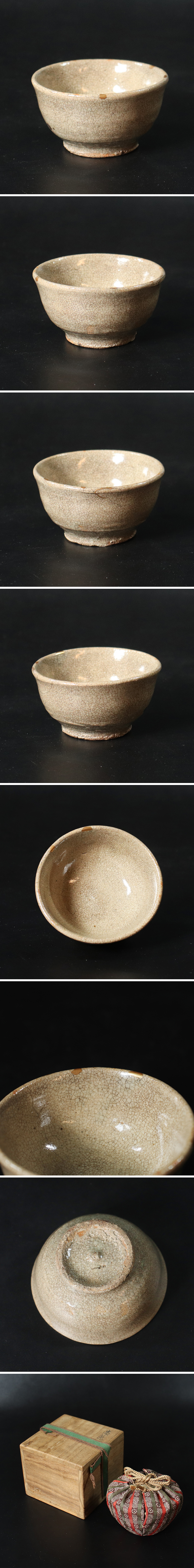 李朝初期高麗茶碗の系譜を引く酒器として格を備える。