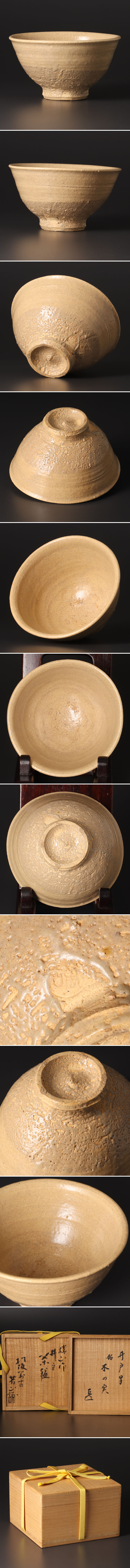 落ち着いた琵琶色の肌に、井戸茶碗特有の力強い削りと梅花皮の景色が味わい深い一客です。素朴ながらも堂々とした佇まいで、手に取ると土の温もりが伝わります。 高台横には作者の印があり、裏千家家元による書付と、親族による鑑定がなされた由緒あるお品です。銘も授けられており、お茶席に品格を添えてくれます。茶事の主役としてはもちろん、特別なコレクションとしても自信を持ってお勧めいたします。 ★商品は佐久間勝山作、佐久間芳山識の作品である事を保証致します。 |