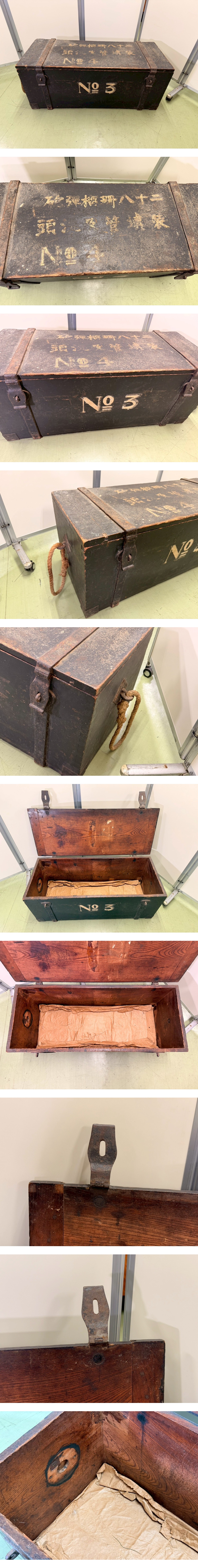 ●【希少 当時物】旧日本海軍 28cm榴弾砲用 弾薬木箱 日露戦争資料 旅順攻囲戦 軍事資料 アンティーク 軍事遺品 収納箱 ミリタリー ■サイズ:横幅 101.5cm/縦幅 44cm/高さ 43cm ※素人寸法の為、若干の誤差はご了承ください。 ■状態につきましては経年に伴うスレ・汚れ・小キズ などが見られます。 ※その他の細かな状態は写真にてご確認・ご了承の上 ご入札くださいませ。 ●こちらの商品などは時代物や古いお品・骨董品となり ますので、細かな状態を気にされる方・神経質な方の ご入札はご遠慮くださいませ。【EC】】 |
