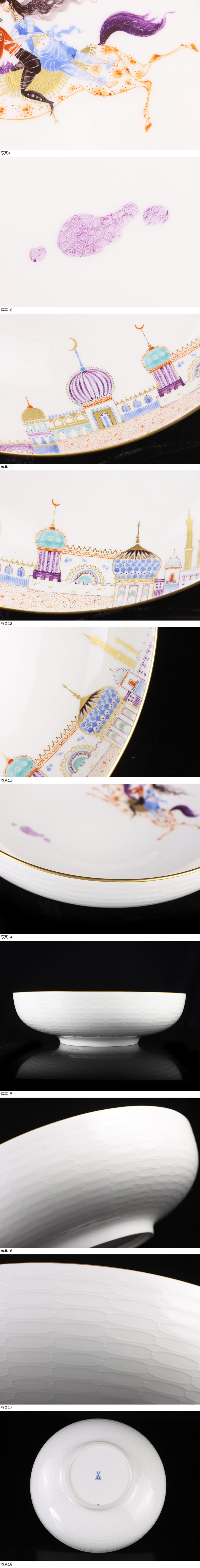 サイズ(約) 高さ 7.8㎝/直径 26.5㎝/重量 990g 付属品 - 名家コレクション 本物保証 Meissen マイセン アラビアンナイト ボウル 深皿 レリーフプレート 千夜一夜物語 深鉢 ボウル 直径26.5㎝ 本物保証 マイセンの中で最も人気の高いシリーズの一つがハインツ・ヴェルナーによる作品、アラビアンナイトです。 豪華な24金を使用した華やかな絵付けが大変見事で、ひとつひとつ手作業で描かれるマイセンの作品は、非常に芸術性の高い素晴らしい美術作品です。 当作品はレリーフが施された逸品で、アラビアンナイトシリーズでもなかなか市場でも見ることがない作品「レリーフプレート深鉢皿」でございます。 、非常に芸術性の高い素晴らしい美術作品です。 初見の作品になり、希少価値は大変高いお品となります。 レリーフが施され、絵付けに関しましても申し分のない確かな出来に心を打たれます! 状態、古い作品の為、底面に薄汚れ、若干のスレ等はございます。 現状一点物となりますので、画像参考の上、ご理解いただき入札の方お願いいたします! 激レアマイセン!この機逃すと、二度と出会えない作品だと思います!大事にしていただける方の入札お待ちしております! |