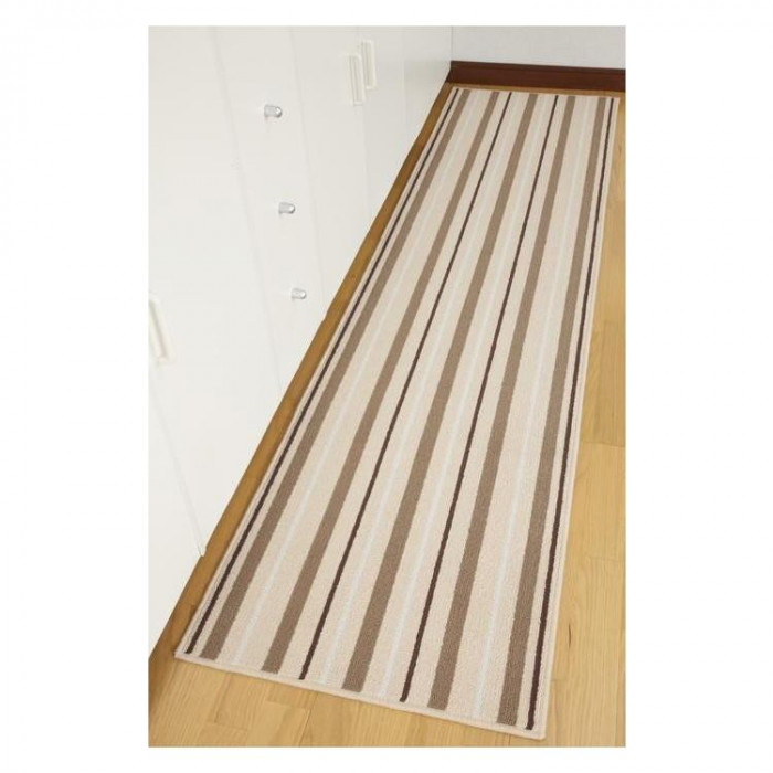 | 汚れやすいキッチン前の床面をロング・ワイドにカバーします。裏面に滑りにくい加工を施しているので、横ズレしにくいです。 |