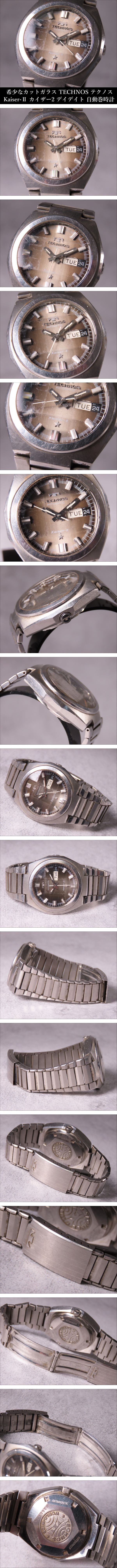 【ONE'S】希少なカットガラス TECHNOS テクノス Kaiser-Ⅱ カイザー2 デイデイト 自動巻 メンズ腕時計 動作品 | |||