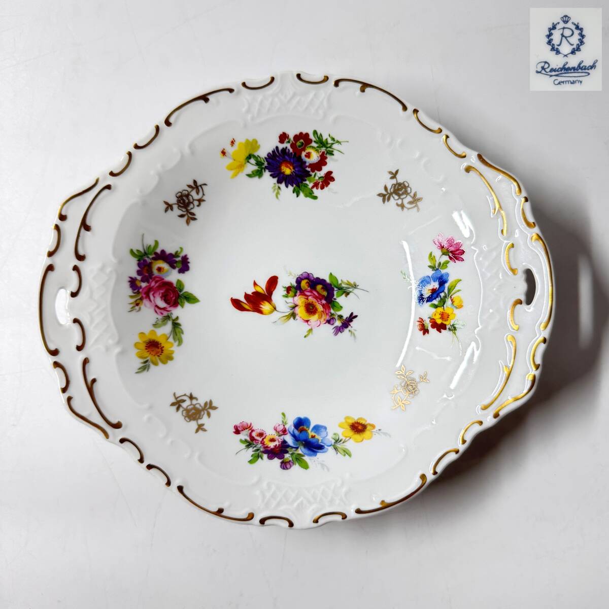 未使用 Thuringian Porcelain チューリンゲン ポーセリン Reichenbach ライヒェンバッハ ハンドル付きプレート SCHOTT ZWIESS ショットツヴィーゼル ゴブレット Khn lt ren 輪花 ラウンドステッチクロス フラワーモチーフ 現状品の出品です。