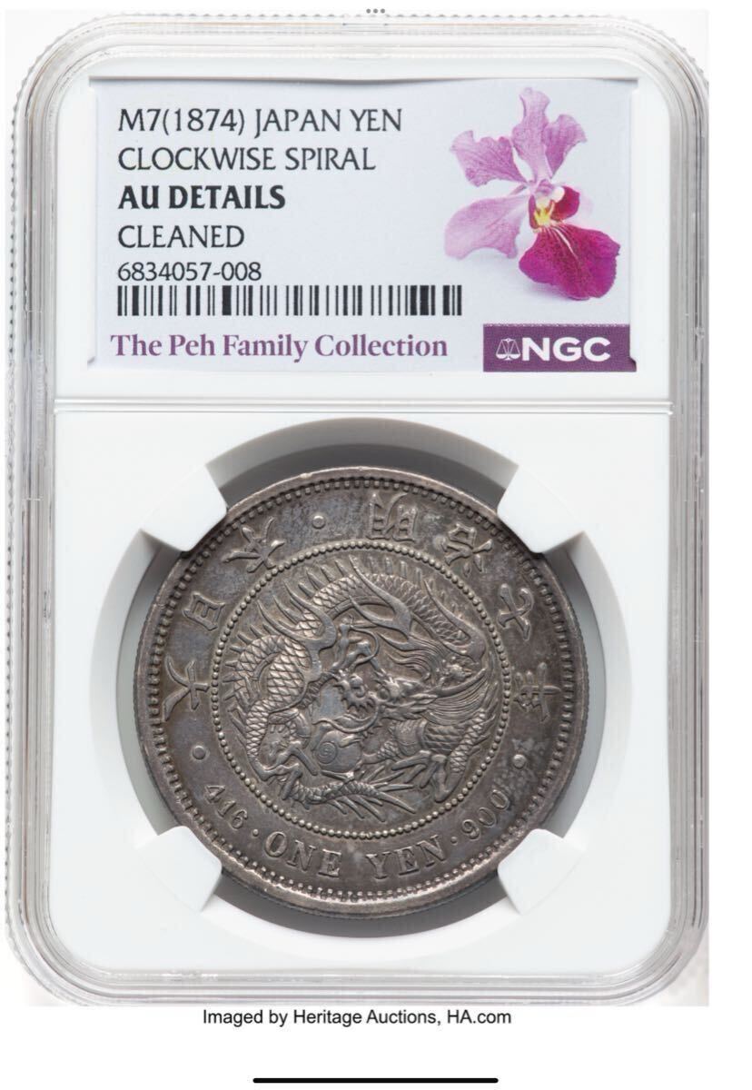 流通極小の希少バリエーション「Clockwise Spiral」を備えた明治七年(1874年)壹圓銀貨、NGCによるAU Details(Cleaned)評価品です。| 出价者 | 信用 | 价格 | 时间 |