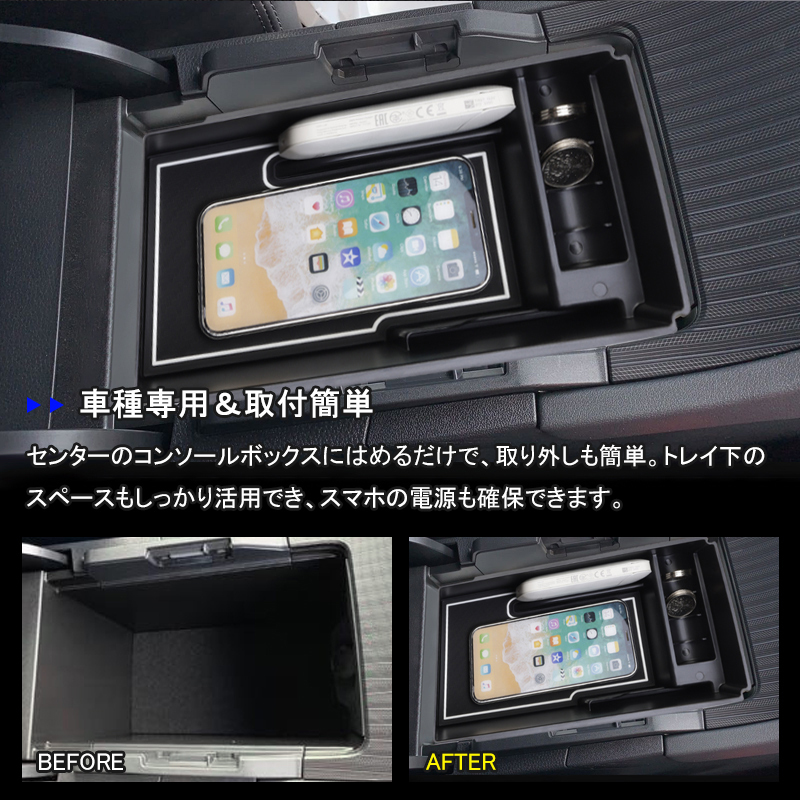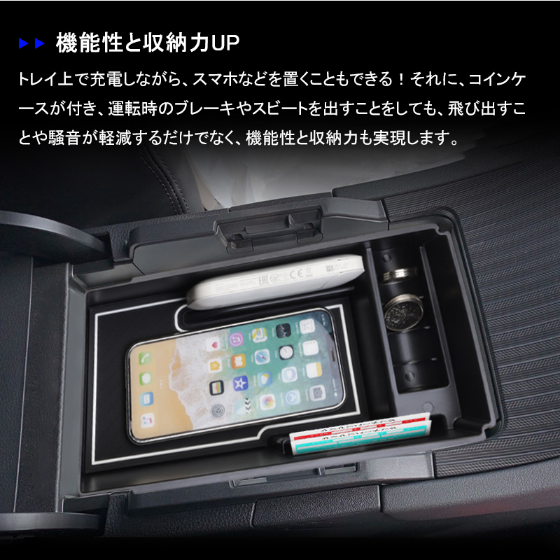 | 商品説明 | 機能性と収納力UP 優れたABS樹脂採用 コイン収納 滑り止めラバーマット付き 車種専用&取付簡単