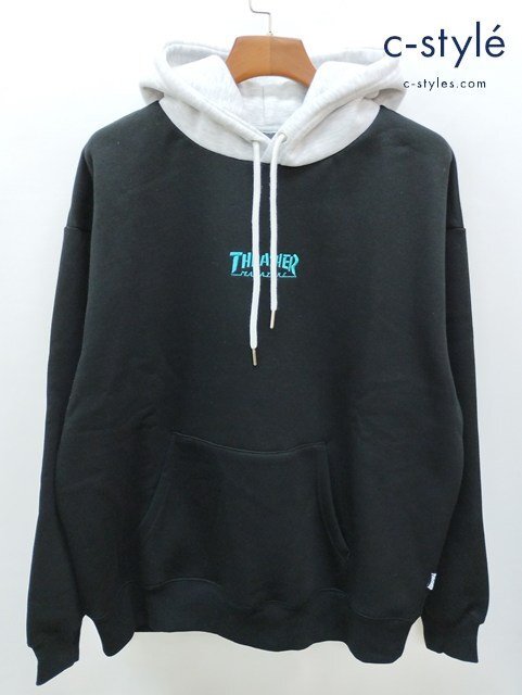 | THRASHER スラッシャー フーディー L ブラック 裏起毛 刺繍 フード配色 バイカラー 205244036 |