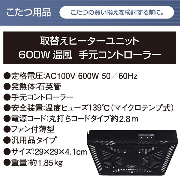 こたつ取替えヒーターユニット 600W