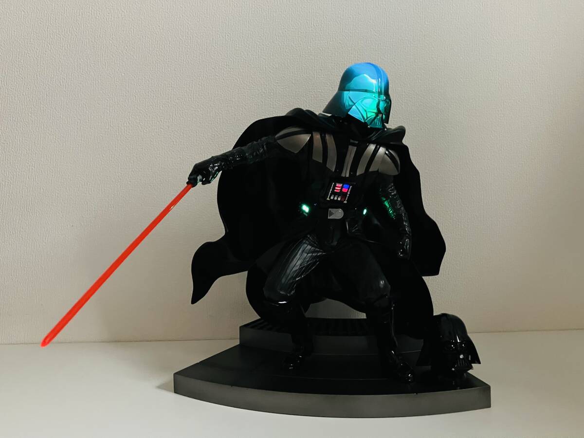 本体は目立つ大きな傷などなく程度良いです スイッチを入れると、頭と胴部分は光ります ライトセーバーは光ってないようです 電池はどこから入れるのかよく分かりません 画像現状のお渡しとなります | |||