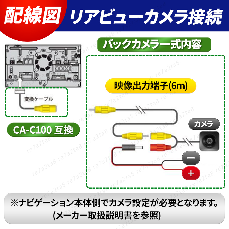 | 商品説明 | 【商品名】 KENWOOD ケンウッド ナビ対応 小型バックカメラ 変換アダプタ付き 変換アダプタは CA-C100互換品となります。 ■適合ナビの年式、型式をご確認ください。 ・ナビ本体へは付属の「変換接続ケーブル」を接続後「カメラ映像入力コード(RCA端子)」に接続してください。 ※ご不明な場合はメッセージよりお知らせください。 【用途/使用】 カーナビゲーションシステムに追加で取り付けができるキットです。 バック駐車時の後方確認の安全運転をサポートします。 【小型軽量設計】 新高感度約42万画素CMOSセンサーを搭載し、超高画質カラー映像 超小型ボディ(約20mm×20mm)で取付け後も目立たず邪魔になりません。 【魚眼レンズ搭載】 ワイドリアビュー広角170°の後方監視で死角をなくしました。 取り付け後の角度調整も可能 【ガイドライン表示】 駐車の際に有効な対象物との距離の目安確認ができます。 【防水性能】 国際防水防塵規格 IP68 さまざまなシビア環境にも対応。 ________ 【セット内容】 ①小型バックカメラ ②映像用ケーブル:約6m ③電源ケーブル ④固定用ネジ:2本 ⑤変換コネクタ:CA-C100互換品 【詳細情報】 ■電源:DC12V ■信号方式:NTSC / PAL ■有効画素数:960×576ピクセル ■レンズ視野角:170度 ■防水レベル:IP68 ■ビデオ出力:1.0Vp-p、75Ω ■消費電流:130-150ミリアンペア ■動作温度:-30~+ 85° ________ 【配送方法】 ■全国送料無料 ■ネコポス・ゆうパケット ________ |
