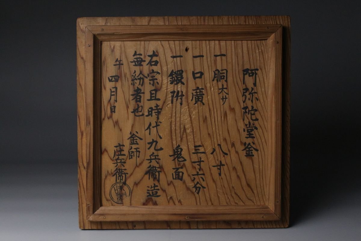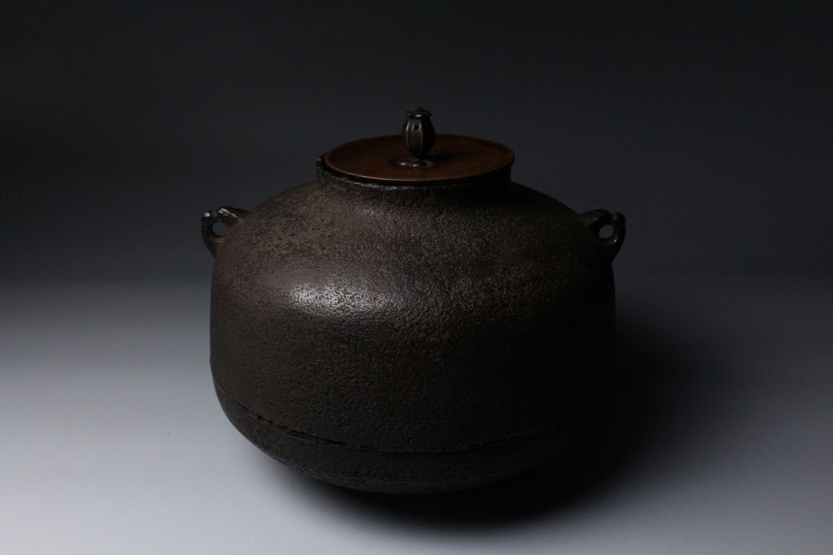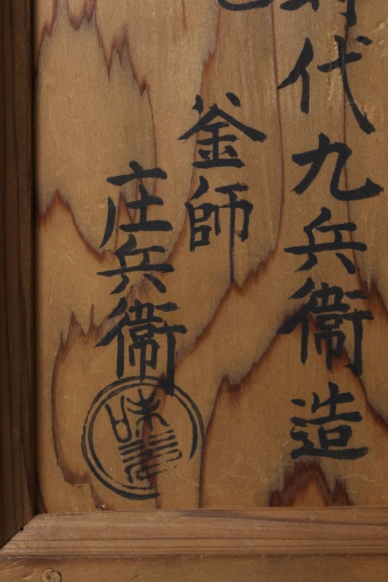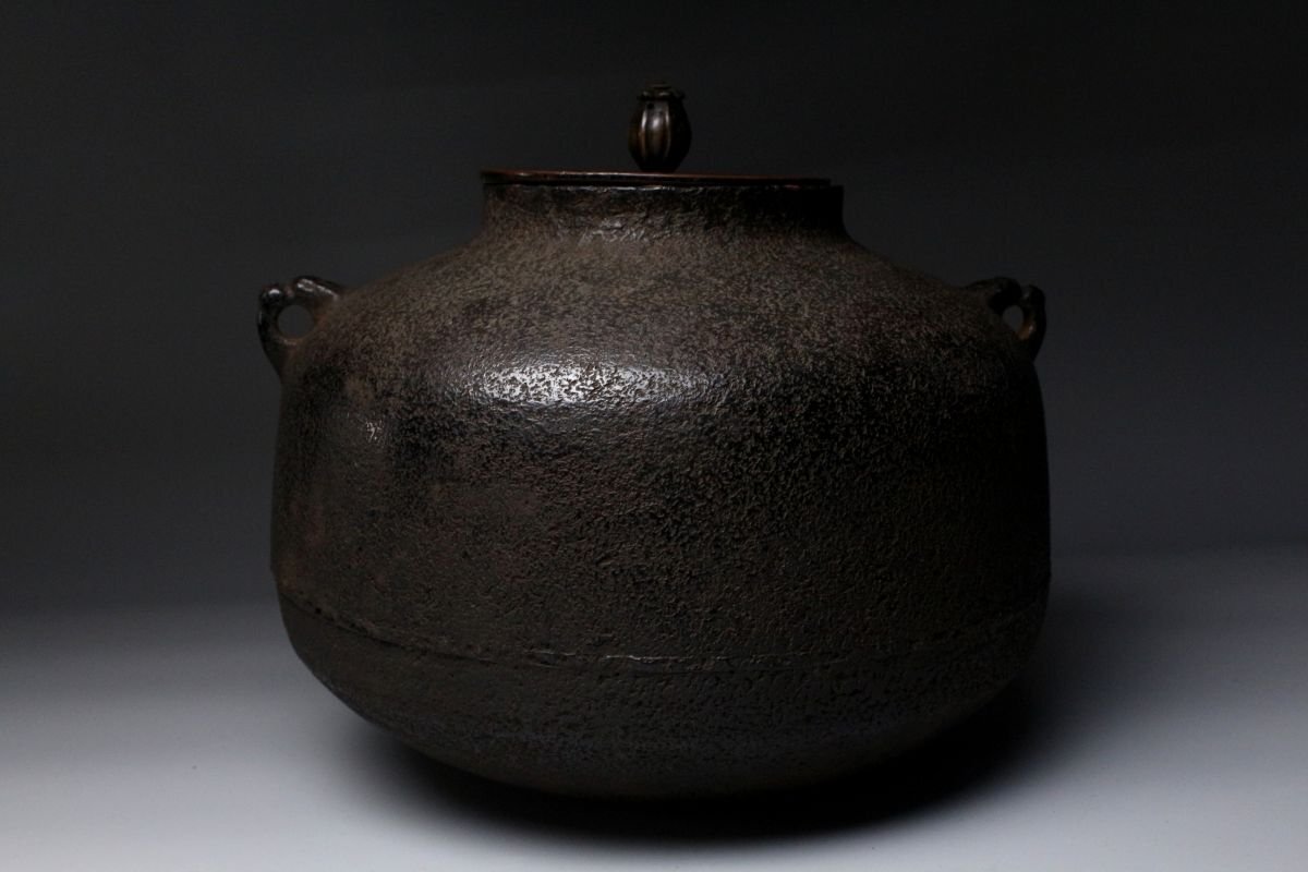 [.WP]25.11 25110904A* * * 商品詳細 * * * ここでしか出逢うことのできない唯一の美をご紹介させて頂きます。 作家略歴 西村九兵衛(にしむら くへえ) 江戸初期の釜師 名:家久 西村九兵衛は、江戸初期に活躍した著名な釜師で、千宗旦(1578~1658)の釜師として知られます。 その出自については諸説あり、西村道仁の子、または孫・弟子とも伝えられ、西村道弥の親類であったともいわれますが、詳細は明らかではありません。 幼少期に父と別れたため、後に名越浄味に師事し、その技を磨いたと伝わります。宗旦好みの「蒲団釜」をはじめ、「四方釜」「裏釜」「累座釜」「唐犬釜」「土斎釜」など、茶の湯にふさわしい多くの名作を残しました。 その作風は、端正な作行と柔らかな線の美しさに特徴があり、地肌は砂肌で中荒肌に近いものが多いながらも、仕上げが極めて巧緻なため荒れが見えず、焼抜を施さない“生釜”でありながら、焼抜以上の精妙な仕上がりを誇ると評されています。 寛文七年(1667)銘のある梵鐘が京都・立本寺に現存し、その優れた技術の高さを伝えています。 子はなかったとされ、一代限りともいわれますが、後世には宝暦年間(1751~1763)に西村九右衛門という釜師が現れ、その子が再び「九兵衛」を称して安永年間(1772~1781)に京都油小路で茶湯釜を制作。これを初代九兵衛の流れを継ぐものとし、以後三代にわたり「久兵衛」を名乗ったと伝えられます。 ■商品内容/ 釜、書付箱 ■サイズ/横27㎝×高22.2㎝×奥行26㎝ 重量:4kg 箱:四方28㎝×高26.5㎝ ■状態/経年による スレ、傷、汚れ、錆び、剥がれ 箱にスレ、傷、汚れがございます。 ※水漏れはございません。 ※写真にてご確認、ご了承の上ご入札下さい。