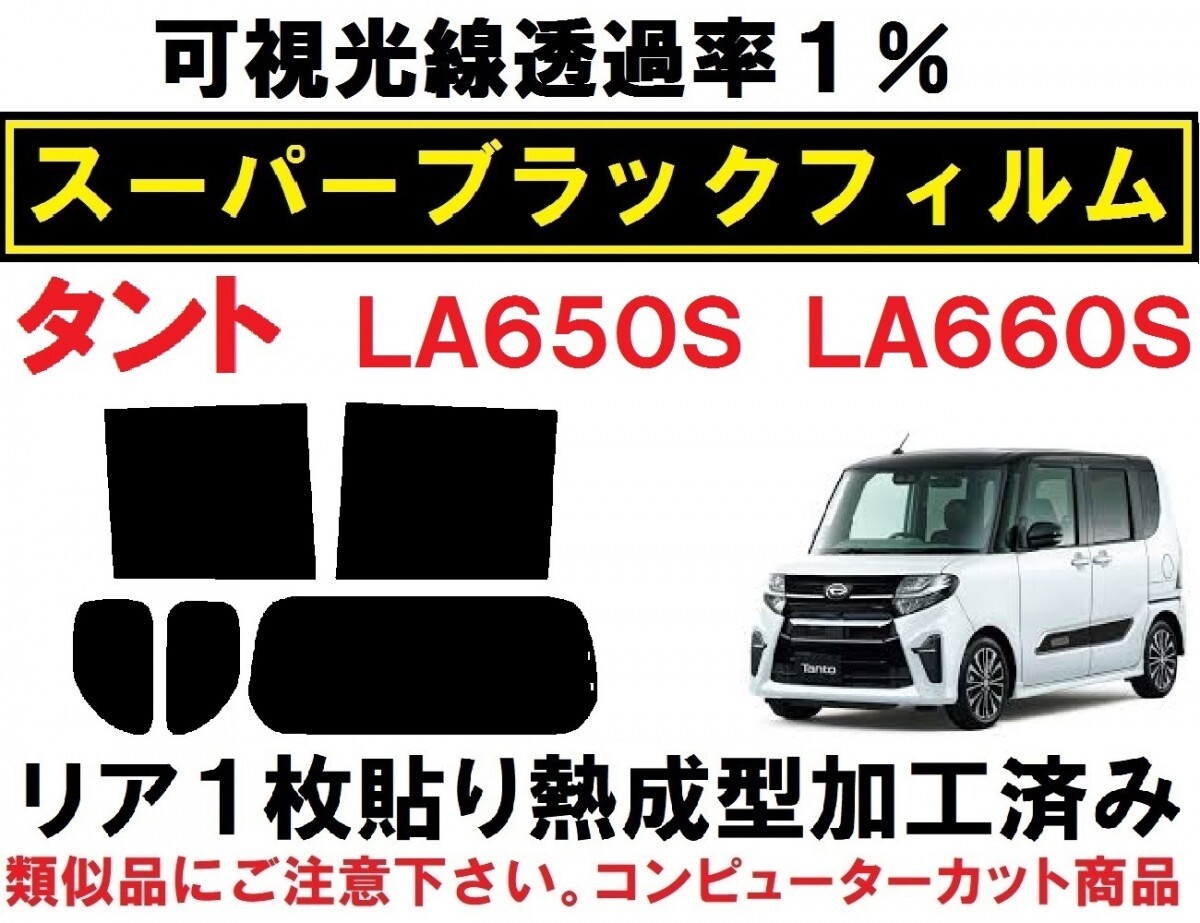 LA650S・LA660S タント タントカスタム用スーパーブラック『可視光線透過率1%』リア1枚貼り成型加工済みフィルム リア5面セットです。(専用施工液付き) 令和1年7月~ LA650S LA660S タント・タントカスタムに適合します。 ハイマウントストップランプ部分の切り抜きも出来ます(画像2) ご落札後、ご指定下さい。 ※適合などご不明な点は、お気軽にご質問下さい。 ◇◆◇施工に便利なプロ仕様のヘラセット付き商品も出品中です◇◆◇ こちら ◇◆◇精密コンピューターカット◇◆◇ 貼りやすさを最優先に各部のサイズ・形状など微調整し、改良を重ねた独自のデータを製作。 高精度な最新・大型カッティングプロッターによるカットで正確で滑らかなカットラインを再現しています。 施工業者だからわかる、貼りやすいサイズ・形状に仕上げています。 ◇◆◇リア1枚貼り成型加工済み◇◆◇ リアガラスの湾曲に合わせて熱成型加工して有りますので、平面に貼るのと同様にたるみが出ず1枚貼り出来ます。 ※最適な状態に成型加工して有りますので、ヒートガン(ドライヤー)等は不要です。 ◇◆◇専用施工液付属◇◆◇ 軽視されがちな施工液ですが、貼りやすさに大きく関わる部分になります。中性洗剤などで代用せず、必ず付属の専用施工液をご使用下さい。 濃度については車種・季節などにより変わりますので、個別にお知らせ致します。 ◇◆◇業務用高品質フィルム使用◇◆◇ 使用しているフィルムは、安心の国内メーカー 業務用高品質フィルム「ニュープロテクション」シリーズです。(可視光線透過率1%) 業務用フィルムの中で最も濃いタイプで、紫外線99%カット 遮熱性も高めです。 同シリーズで可視光線透過率 5% 10% 15% 25% の物もご用意出来ます。 ご希望の場合は、ご落札後濃さの指定をして下さい。(部分的な色変えも可能です) ご指定の無い場合、全て1%になります。 部分的にフィルムが必要になった場合、単品販売も承ります。 他にもタント用フィルム、各種出品中です。こちらもご覧ください。 下記のOEM車両にも適合します。 ・スバル・シフォン(LA650F/LA660F) ご不明な点など有りましたら、お気軽にご質問下さい。 | ||
