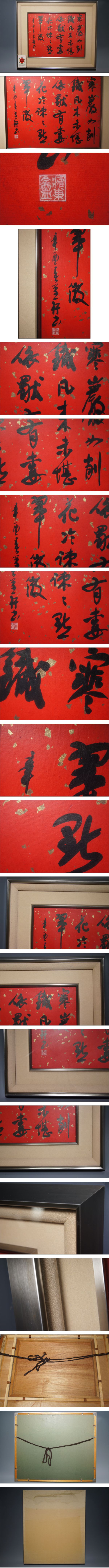 真贋保証■大野篁軒■ 肉筆 書額 漢詩 書家 書壇院会長 埼玉県飯能 近藤秋篁に師事 赤 金箔 | ||||||||||||||||||