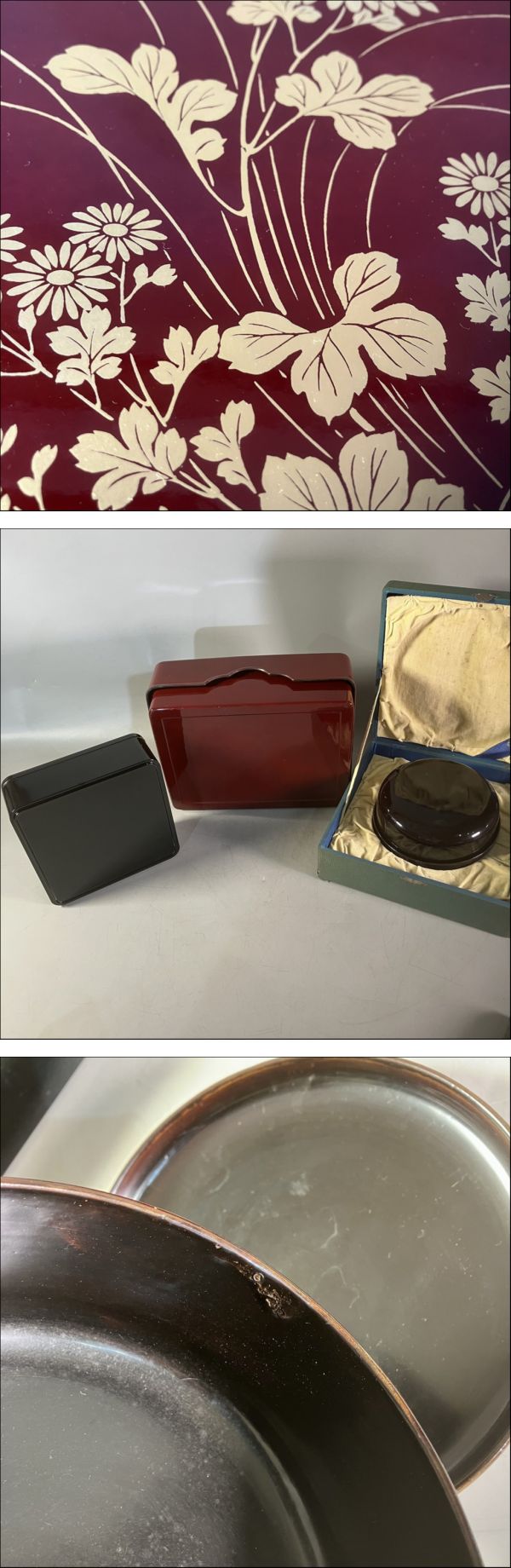 | M2-274 本漆器 螺鈿 金彩 重箱3点まとめ 硯箱/お重/文筆箱 | ||