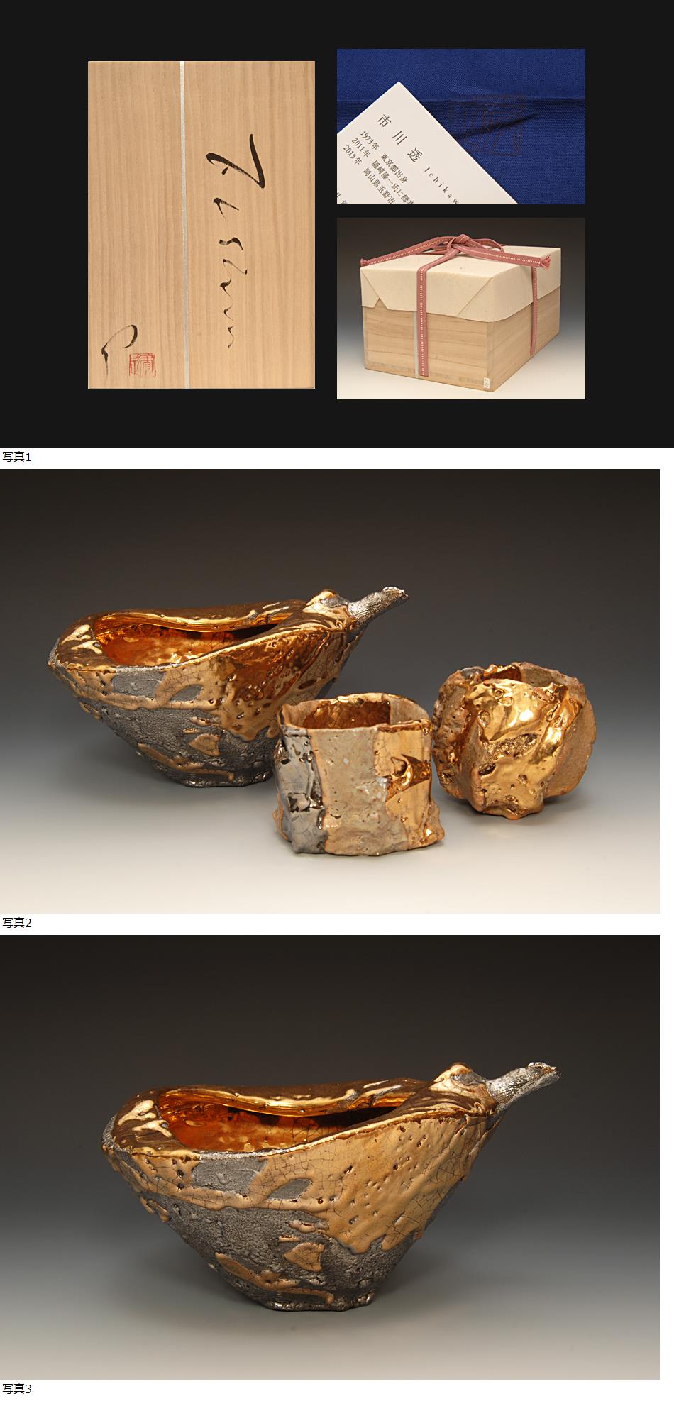 星庵厳選名品企画 市川透作 金銀彩酒器三点揃Ⅱ出展作共箱