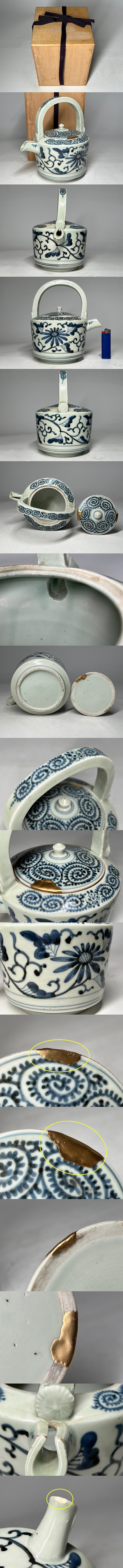 古伊万里 染付 蛸唐草紋 銚子 酒器 合わせ箱 *(直し、少しカケ有り) ◆商品詳細 寸法(約):19.5x17.5x9(高×幅×口径cm) ※寸法に若干の誤差が生じる場合もございます。 蓋の縁と注ぎ口に直しが有ります。 蓋に少しカケが有ります。 汚れがありますので、 ご承知の上入札お願いします。 状態等画像にてご確認の上ご入札よろしくお願いいたします。 ◆発送先等のご連絡とお支払いについて ※発送先等のご連絡 落札時から48時間以内にお願い致します。 ※お支払 かんたん決済の期限内にお願い致します。 複数点落札時にまとめて取引の場合(72時間内)に、 まとめて取引の取引手順(落札者方の操作)を参考にお願い致します。 梱包したサイズを測って、地方によって送料を決めますので、よろしくお願いします。 ◆掲載画像について ※画像は現物を撮影しておりますが、照度、遮光、モニターによっては実物と 色目が異なって見えることがありますのでご注意ください。掲載画像では確認 できない傷や汚れがある可能性もございます、あくまで 中古品であるということをご承知の上、御入札をお願い致します。 ◆補償について 商品到着後はすぐに状態の確認をお願い致します。 商品の破損等がございまし たら、箱や梱包材など全てそのままの状態で保存し、お早めにご連絡ください。 (到着日から一週間以上経過、梱包材の廃棄済み等の場合、保証は致しかねます のでご注意ください。) ◆返品について 思っていたイメージと違う、などのお客様主観による返品はお受けできません ので、予めご了承ください。ノークレーム、ノーリターンでお願いします。届 いた商品が商品説明と著しく異なる場合(寸法、キズ記載ミスなど)のみ承り ます。早めにご連絡ください。 ◆注意事項 当方の希望価格と隔たりがある場合は、終了前にやむなく取下げさせて頂く場 合がございます。 ※商品ご落札翌日から4日間以内にご連絡が取れない場合は、入札取消の処置を 取らさせていただく場合がございます。 ※評価の悪い方は取り消す場合がございます。 ※原則として当方の不備以外のキャンセル・返品・返金は受け付けておりません。 以上の点を予めご了承頂いた上で、入札・落札お願い致します。 ◆発送方法 ▼ゆうパック(補償あり/追跡あり) 梱包後のサイズ:~約80cm ※送料全国一律1200円 (但し北海道、沖縄、離島は+500円いただきます。) 発送元は静岡県となります。 ( 商品の組み合わせによっては同梱をお断りさせていただく場合があります。) ※大型商品について 郵便局の規定を超える商品の場合は、佐川急便またはヤマトでの発送となります。 |