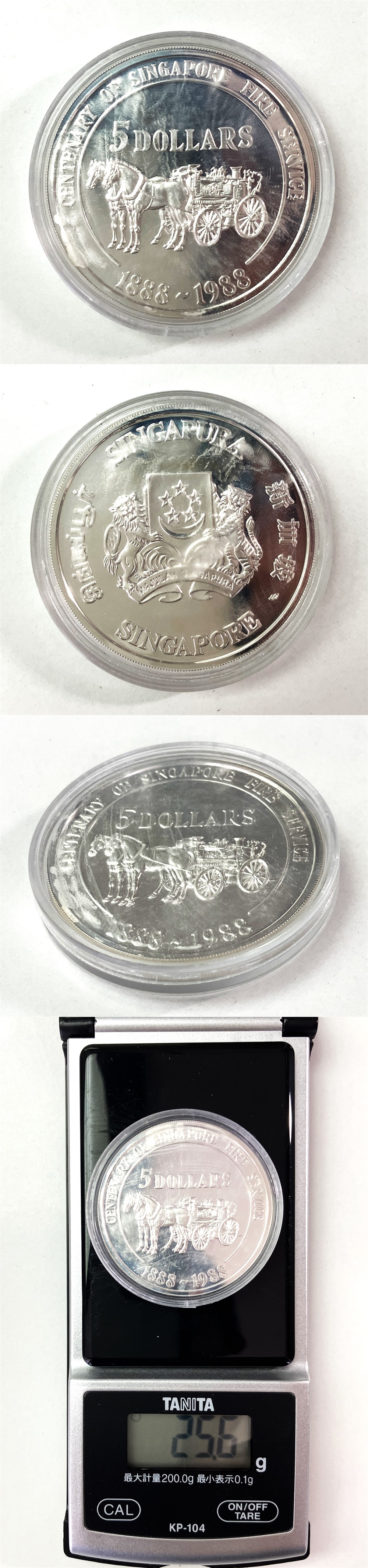 ●シンガポール共和国●消防制度100周年記念(1988年)●5ドル銀貨幣 1枚●プラスチックケース入り●tz698