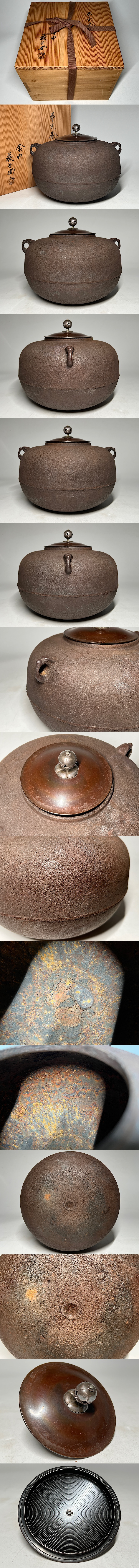 釜師 大国藤兵衛作 平丸形釜 共箱 ◆商品詳細 寸法(約):20.2x25.2x10.8(摘みまでの高×耳までの幅x口径㎝) 蓋重さ:269g 総重量:約3.4kg ※寸法に若干の誤差が生じる場合もございます。 水を24時間はりもれませんでしたが、 のちのご使用による水もれ、破損は保証できませんので、ご承知ください。 経年の汚れ、錆があります。 底や、中の状態も含めて画像で確認の上各自の判断で入札お願いします。 ◆発送先等のご連絡とお支払いについて ※発送先等のご連絡 落札時から48時間以内にお願い致します。 ※お支払 かんたん決済の期限内にお願い致します。 複数点落札時にまとめて取引の場合(72時間内)に、 まとめて取引の取引手順(落札者方の操作)を参考にお願い致します。 梱包したサイズを測って、地方によって送料を決めますので、よろしくお願いします。 ◆掲載画像について ※画像は現物を撮影しておりますが、照度、遮光、モニターによっては実物と 色目が異なって見えることがありますのでご注意ください。掲載画像では確認 できない傷や汚れがある可能性もございます、あくまで中古品であるというこ とをご承知の上、御入札をお願い致します。 ◆補償について 商品到着後はすぐに状態の確認をお願い致します。 商品の破損等がございまし たら、箱や梱包材など全てそのままの状態で保存し、お早めにご連絡ください。 (到着日から一週間以上経過、梱包材の廃棄済み等の場合、保証は致しかねます のでご注意ください。) ◆返品について 思っていたイメージと違う、などのお客様主観による返品はお受けできません ので、予めご了承ください。ノークレーム、ノーリターンでお願いします。届 いた商品が商品説明と著しく乖離している等、当店に原因のある場合には、お 早めにご連絡ください。 ◆注意事項 当方の希望価格と隔たりがある場合は、終了前にやむなく取下げさせて頂く場 合がございます。 ※商品ご落札翌日から4日間以内にご連絡が取れない場合は、入札取消の処置を 取らさせていただく場合がございます。 ※評価の悪い方は取り消す場合がございます。 ※原則として当方の不備以外のキャンセル・返品・返金は受け付けておりません。 以上の点を予めご了承頂いた上で、入札・落札お願い致します。 ◆発送方法 ▼ゆうパック(補償あり/追跡あり) 梱包後のサイズ:~100cm ※送料全国一律1,500円 (但し北海道、沖縄、離島は+500円いただきます。) 発送元は静岡県となります。 ( 商品の組み合わせによっては同梱をお断りさせていただく場合があります。) ※大型商品について 郵便局の規定を超える商品の場合は、佐川急便またはヤマトでの発送となります。 |
