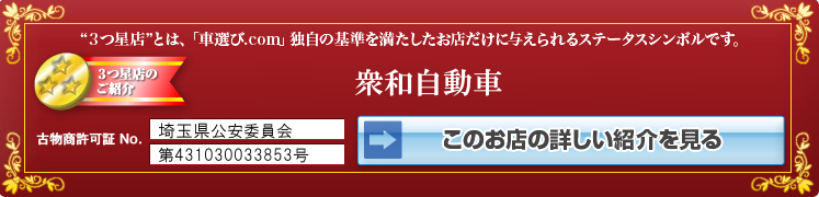 “3つ星店”とは「車選びドットコム」独自の基準を満たした販売店だけに与えられるステータスシンボルです。