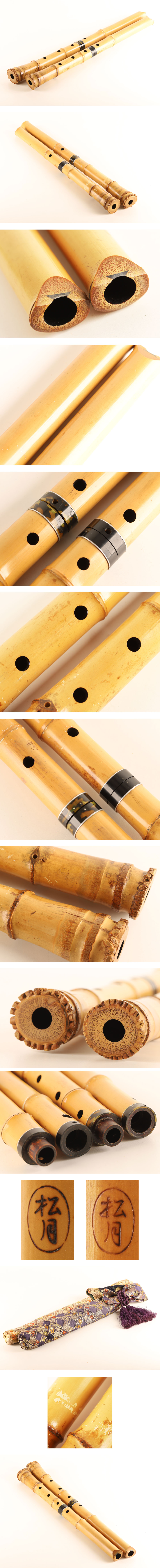長さ 約61cm 唄口 外径 約3.9cm 内径 約2.2cm 管尻 外径 約5.6cm 内径 約1.8cm 長さ 約57.5cm 唄口 外径 約3.9cm 内径 約2.2cm 管尻 外周 約5.2cm 内径 約2cm |